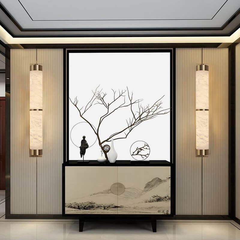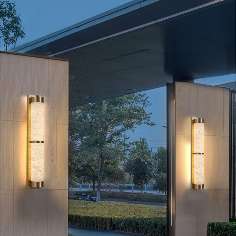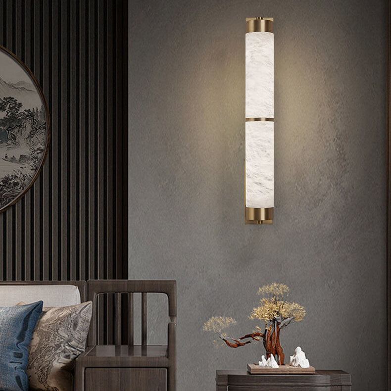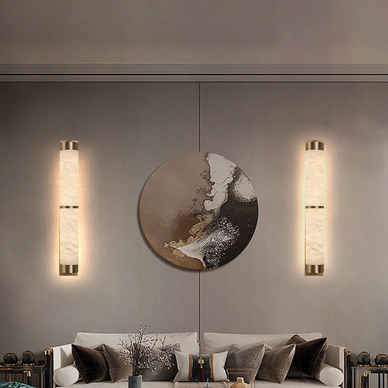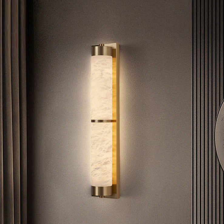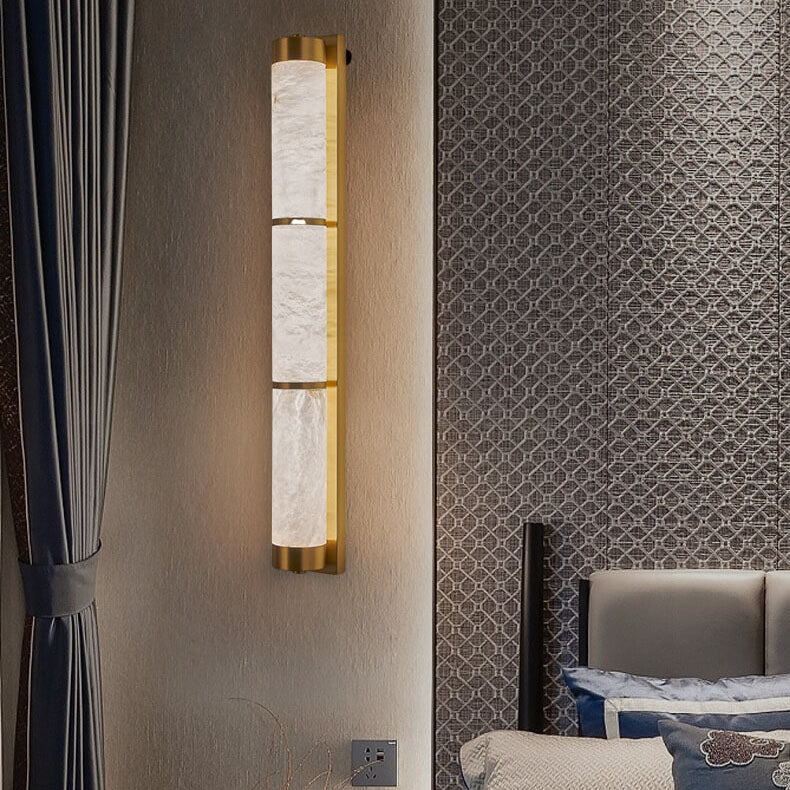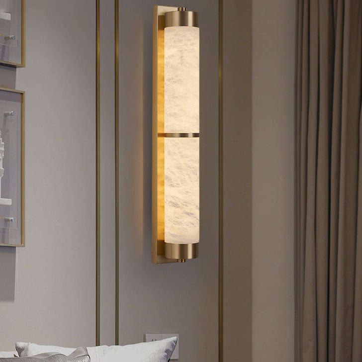 Modern Light Luxury Full Copper Marble Column LED Wall Sconce Lamp