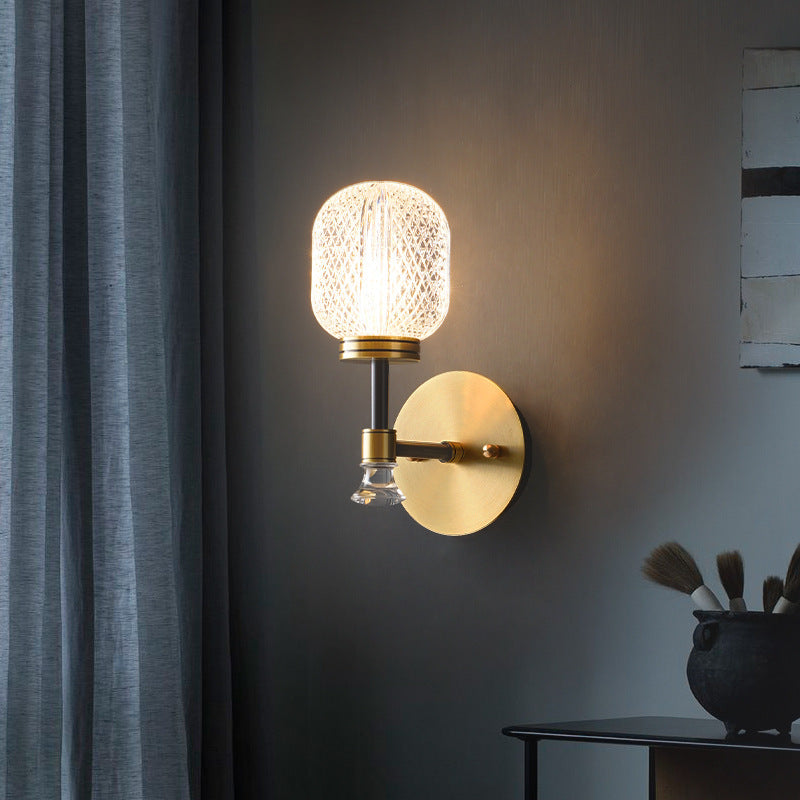 Modern Light Luxury Glass Oval Copper Base 1-Light Wall Sconce Lamp