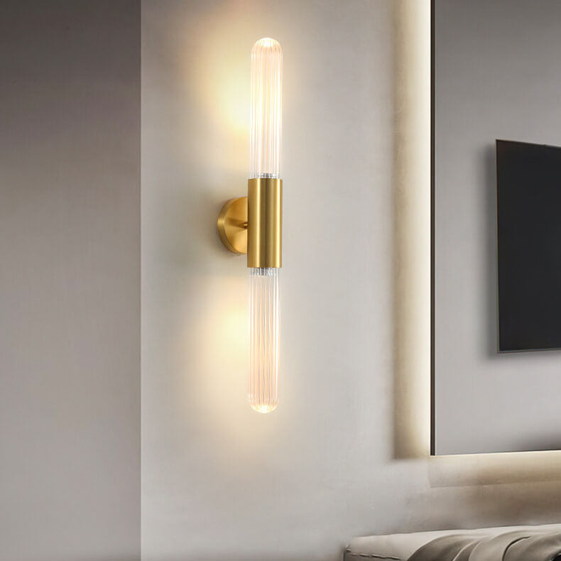 Modern Light Luxury Long Gold Clear Copper Glass 1-Light Wall Sconce Lamp