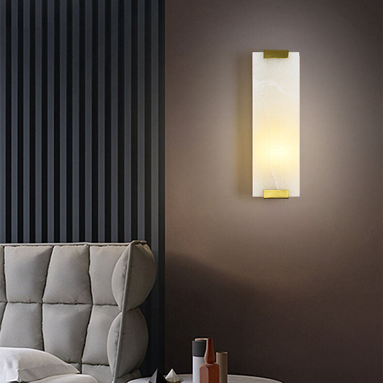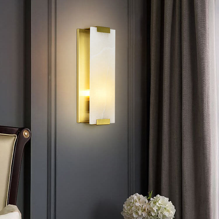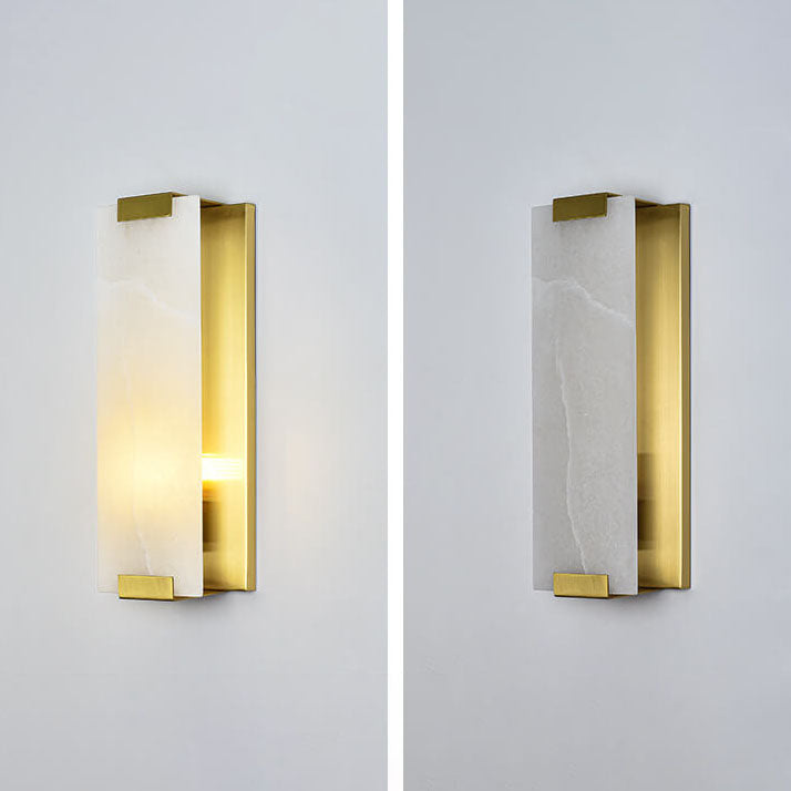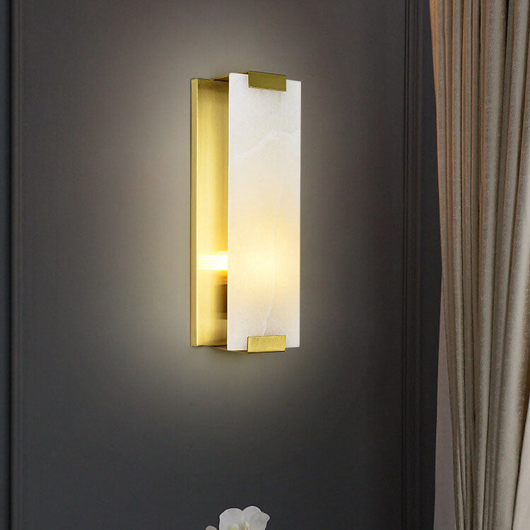 Modern Light Luxury Marble Rectangular Flat Copper 1-Light Wall Sconce Lamp