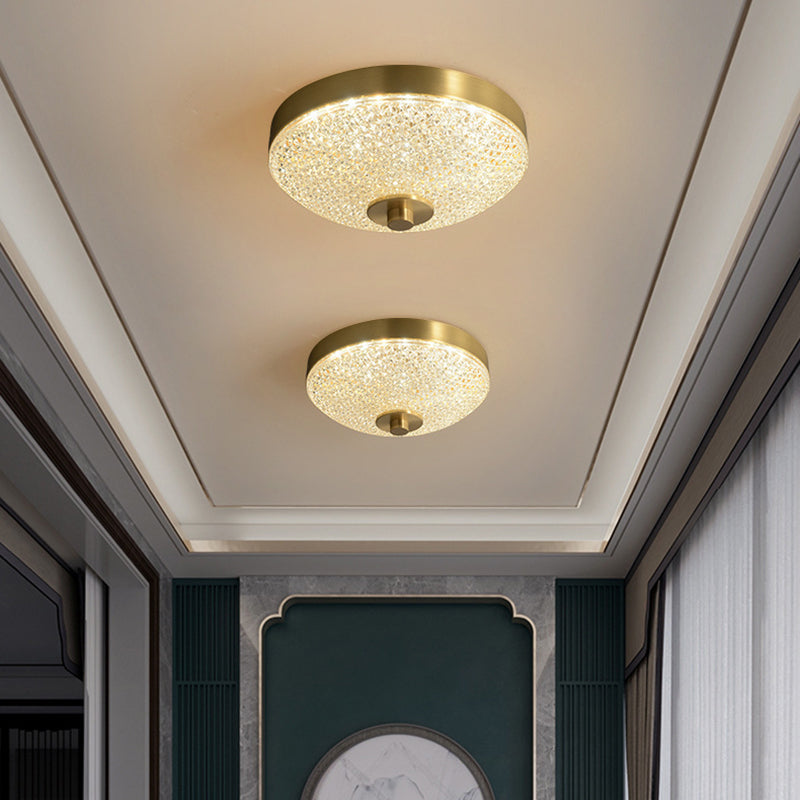 Modern Luxury Acrylic Brass Round Cylinder LED Flush Mount Ceiling Light For Bedroom