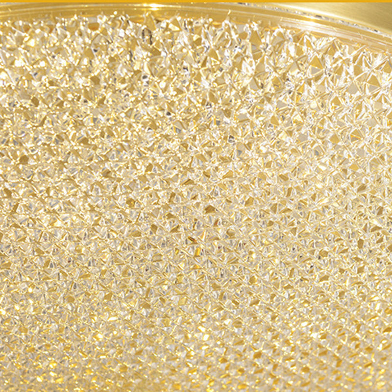 This modern luxury flush mount ceiling light features a sleek round cylinder design crafted from acrylic and brass in a rich copper finish. The integrated LED light offers bright, evenly diffused illumination that’s gentle on the eyes—perfect for bedrooms needing a warm and sophisticated glow.