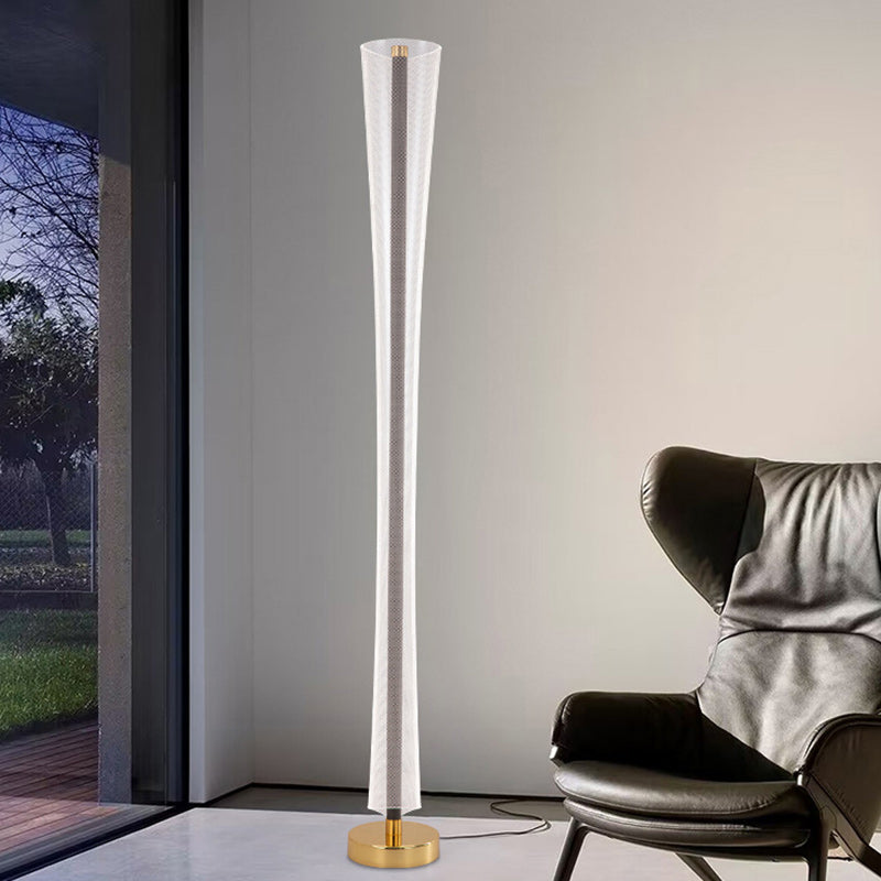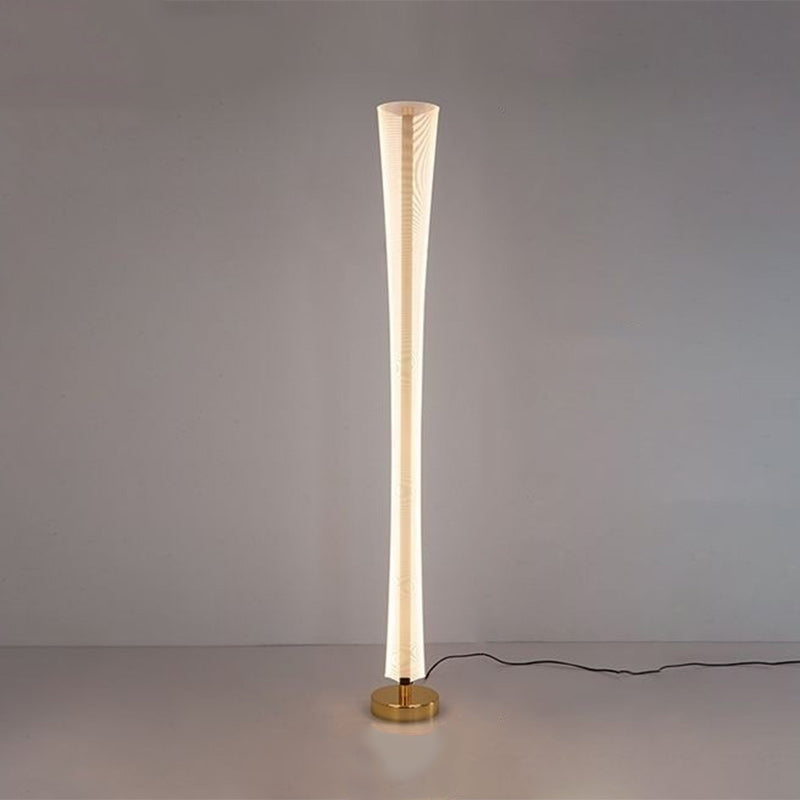 Enhance your living room or bedroom with this modern luxury LED standing floor lamp, featuring a sleek tower design. Made from high-quality aluminum, iron, and acrylic, finished in elegant gold, it provides warm lighting and creates a cozy, luxurious atmosphere.
