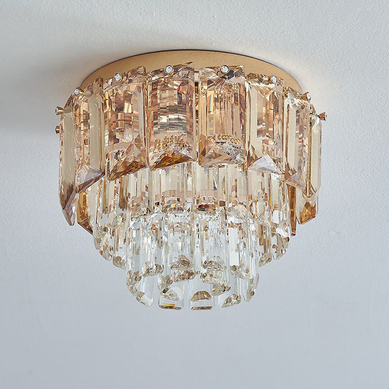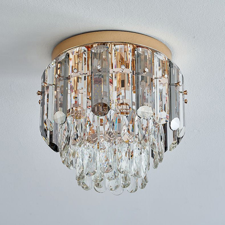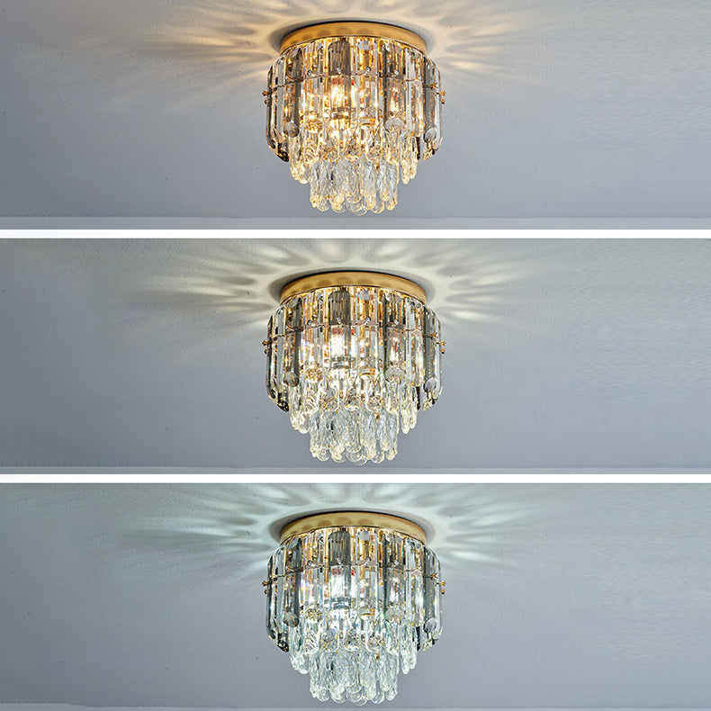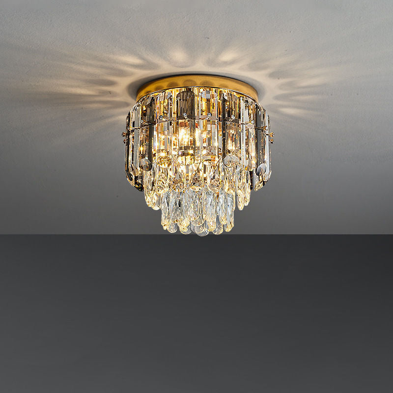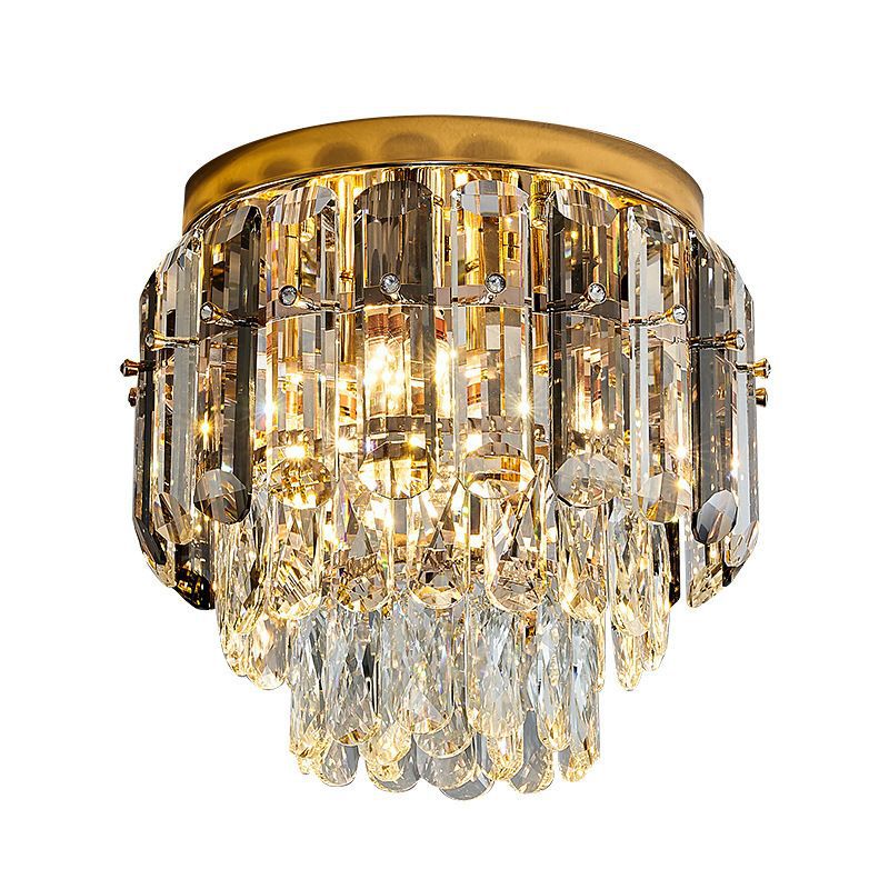 Modern Luxury Art Deco Round Crystal Gold 3-Light Flush Mount Ceiling Light For Hallway