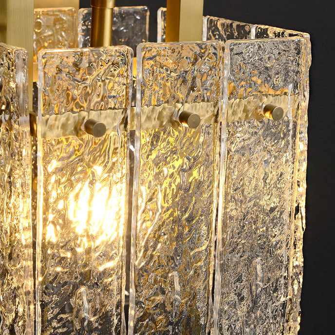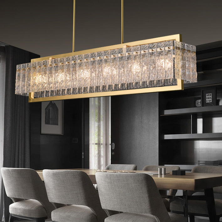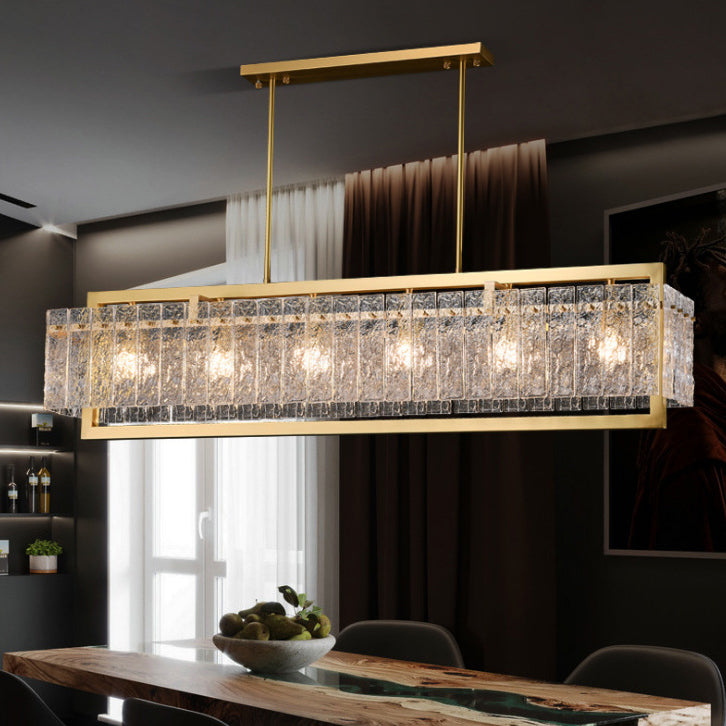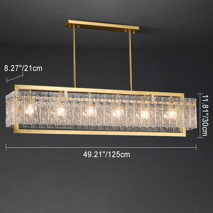 Modern Luxury Brass Glass Rectangular Ripple 1/6 Light Chandeliers For Dining Room
