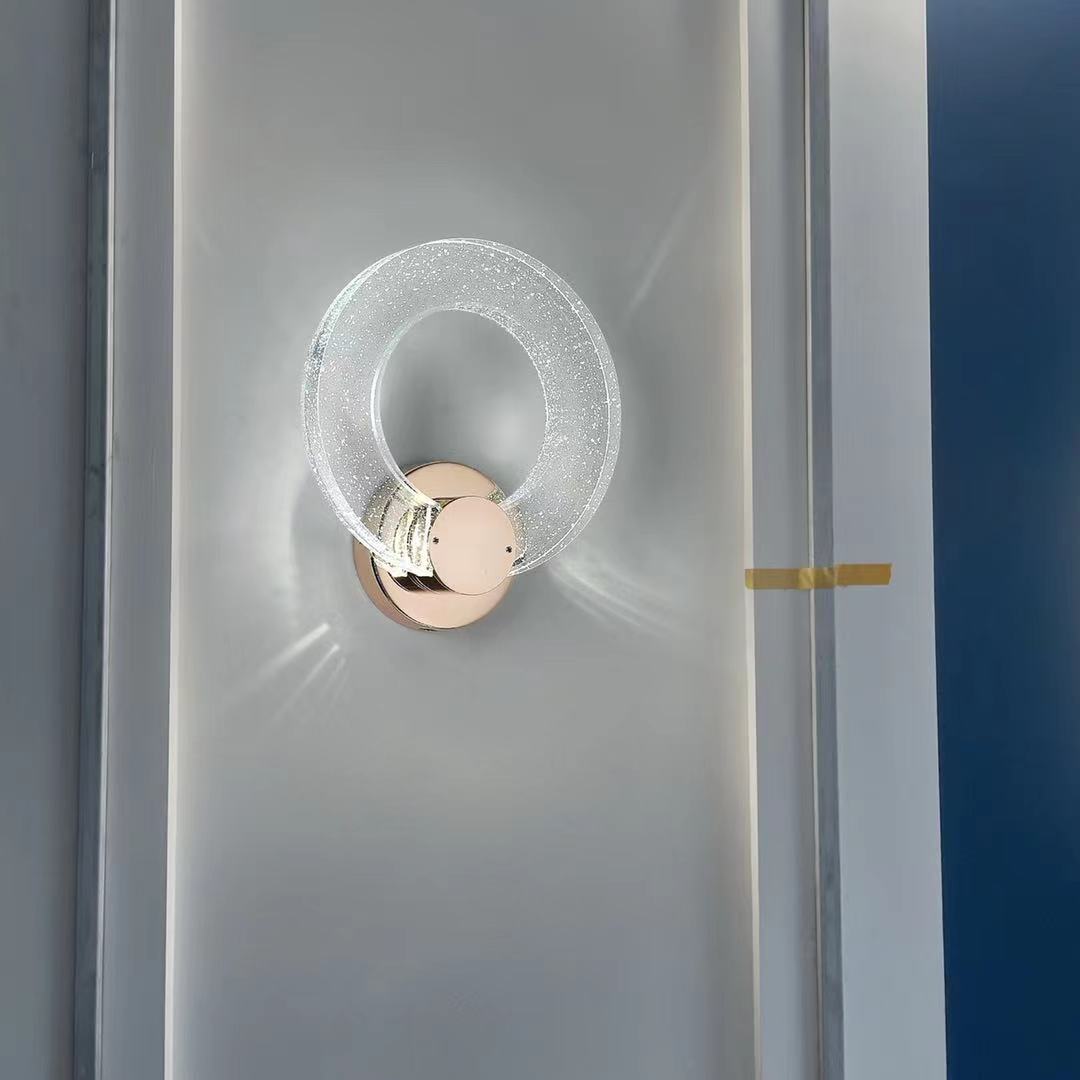 Modern Luxury Circle Bubble Disc Base Iron Aluminum Crystal LED Wall Sconce Lamp For Bedroom
