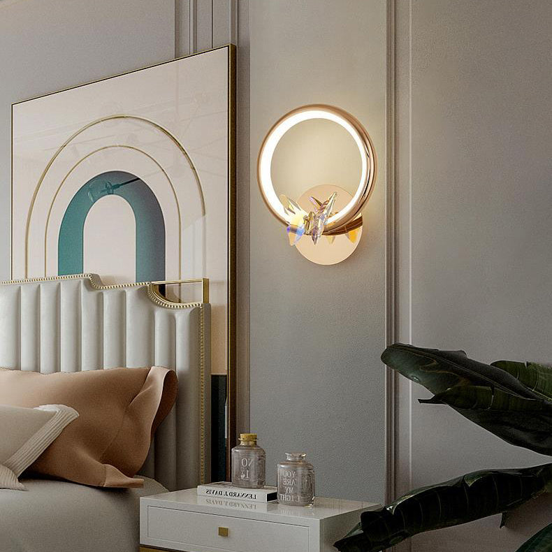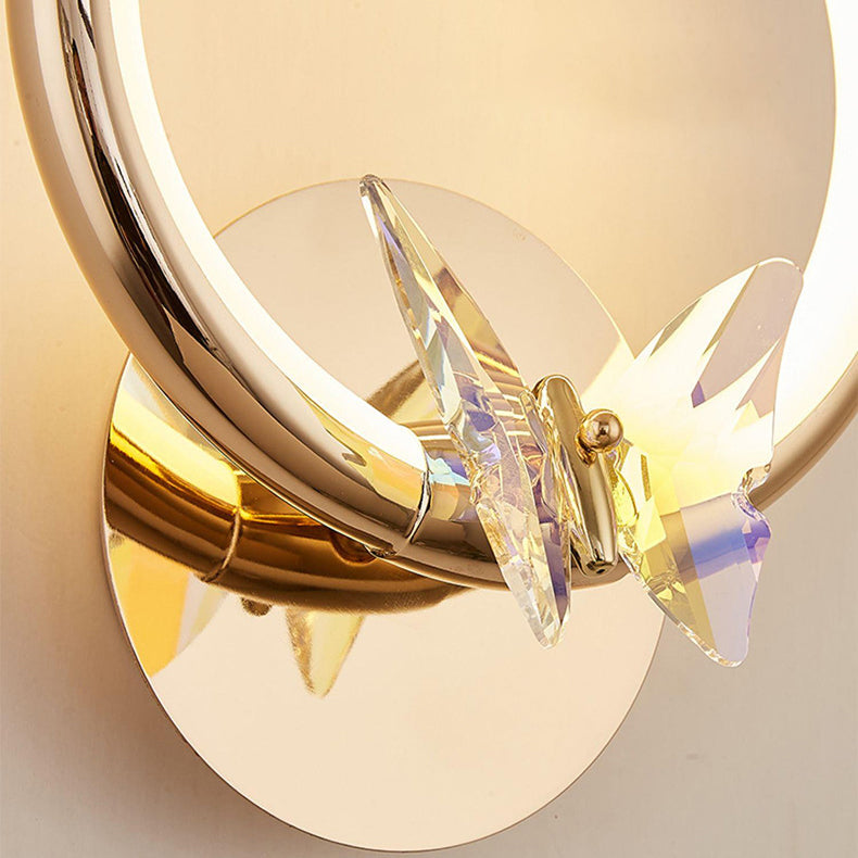 Modern Luxury Circle Butterfly Aluminum Hardware LED Wall Sconce Lamp For Living Room