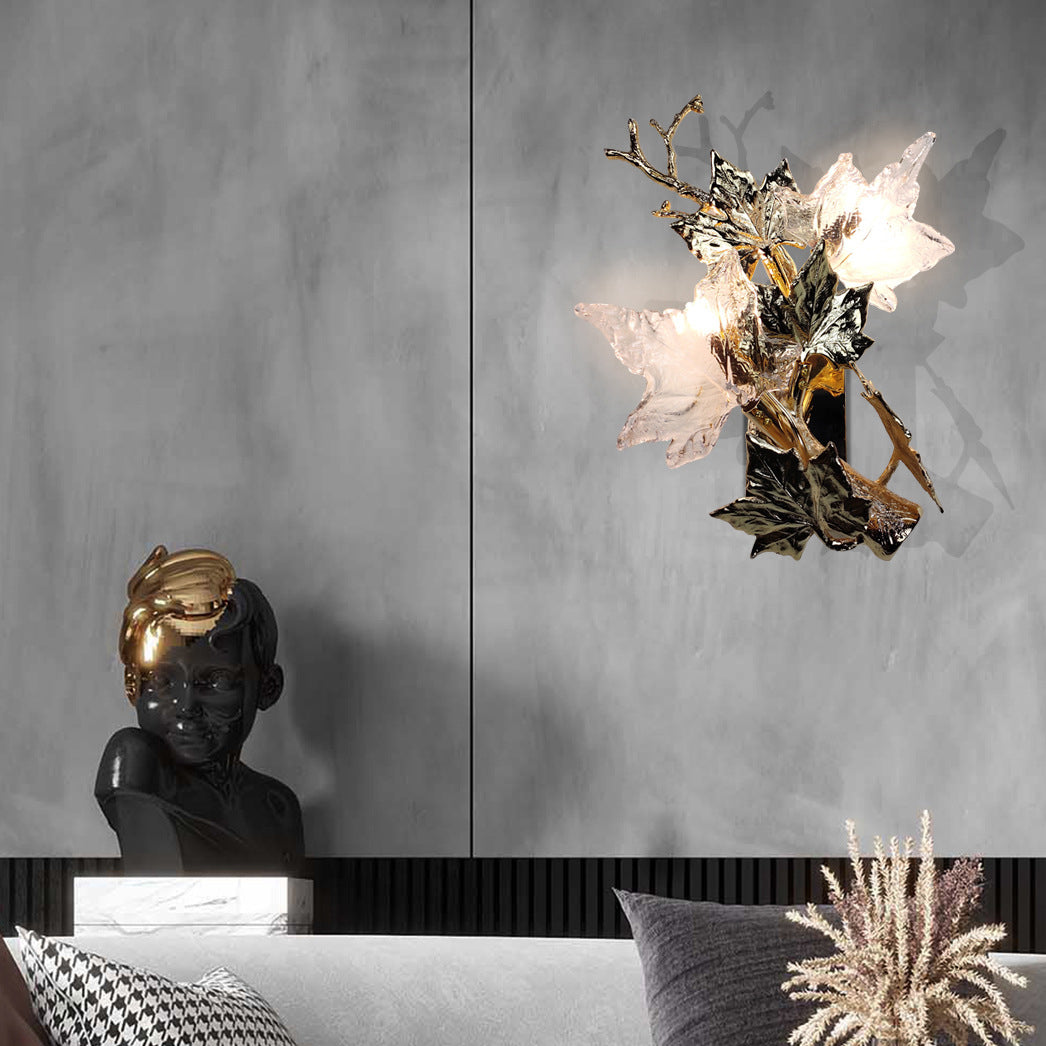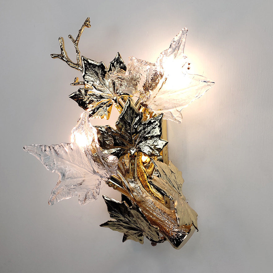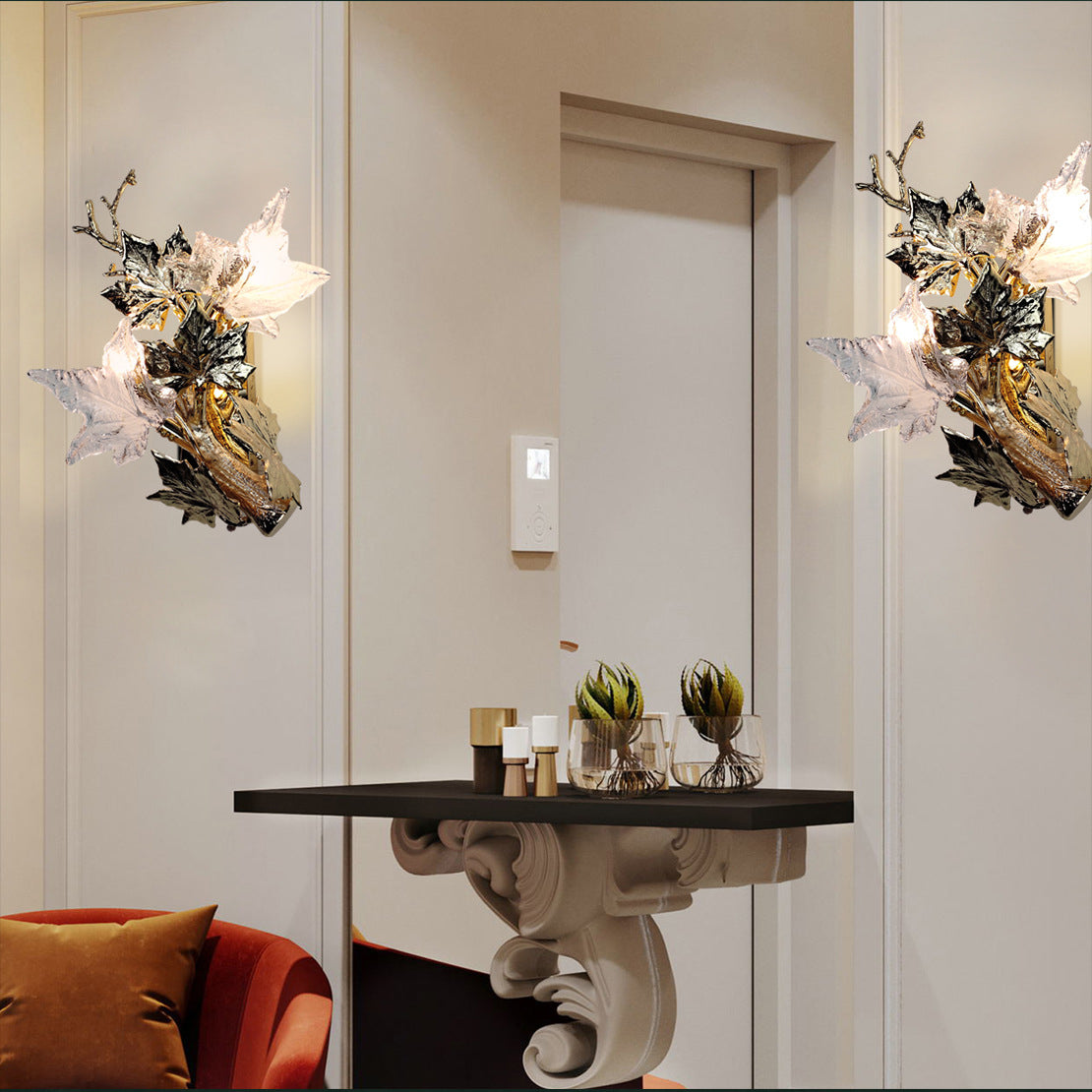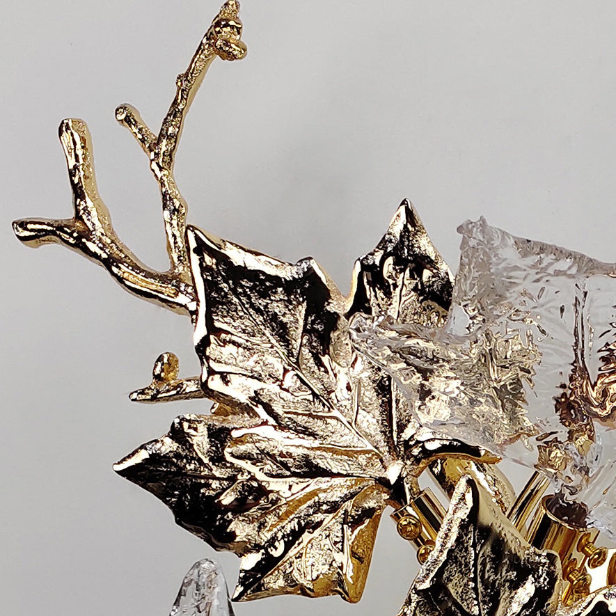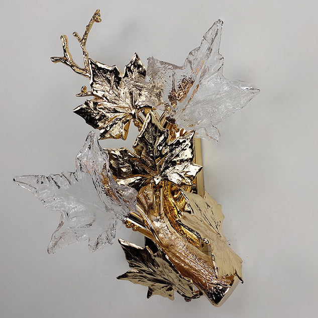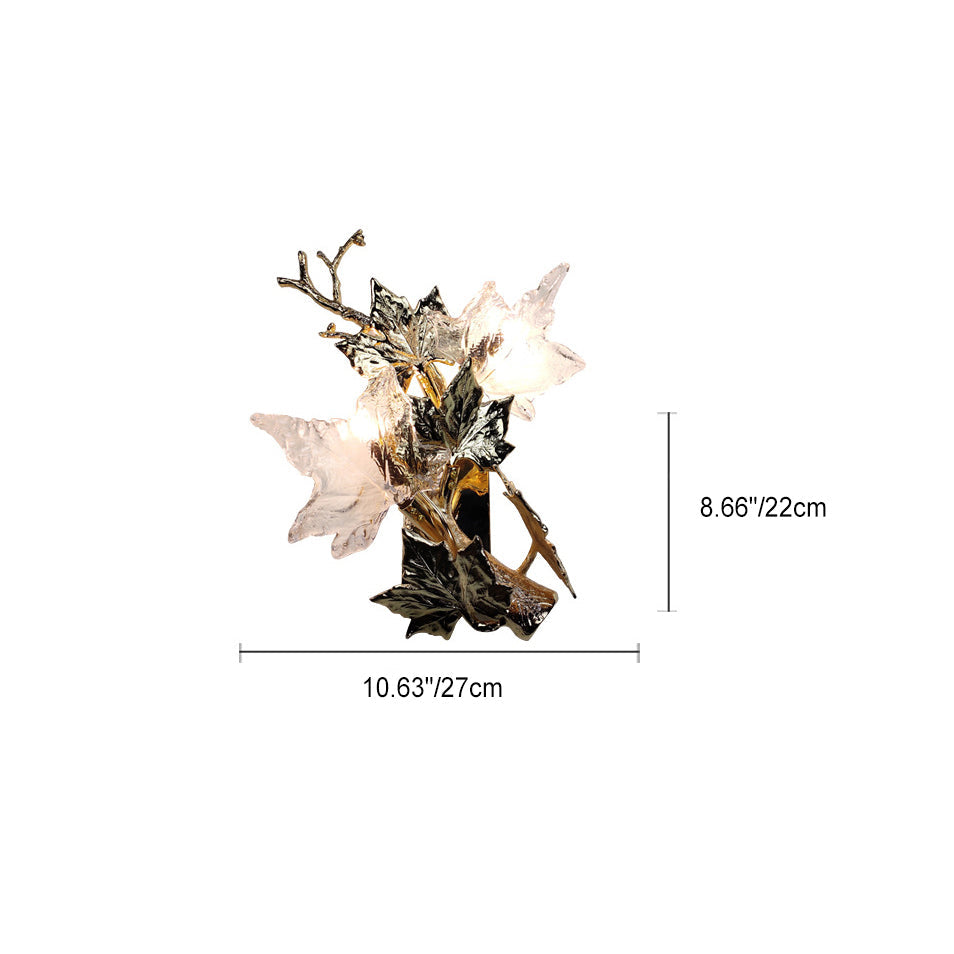 Modern Luxury Copper Colored Glass Maple Leaf Branch 2-Light Wall Sconce Lamp For Living Room