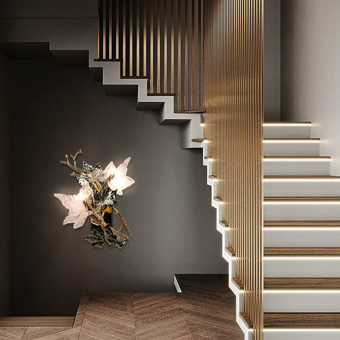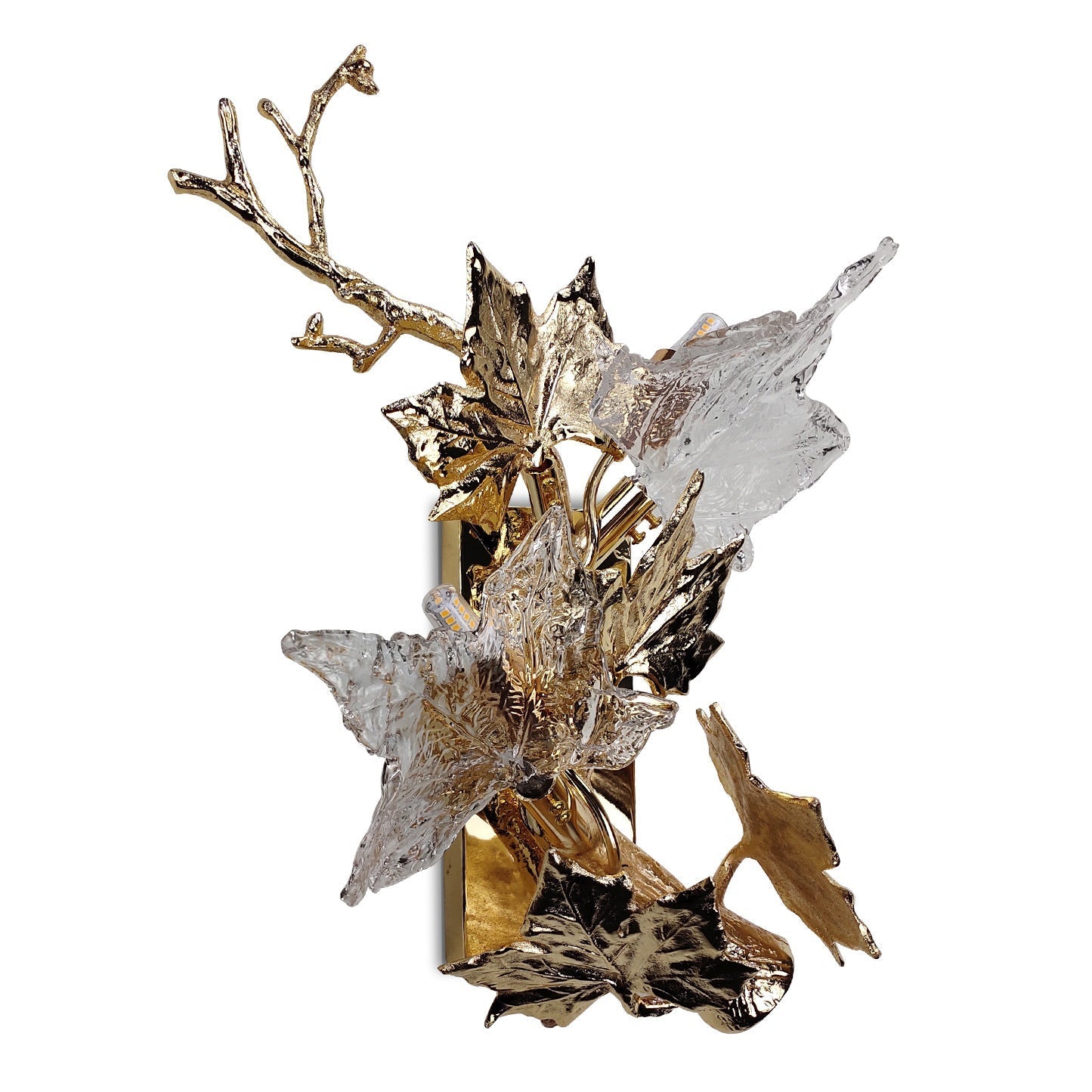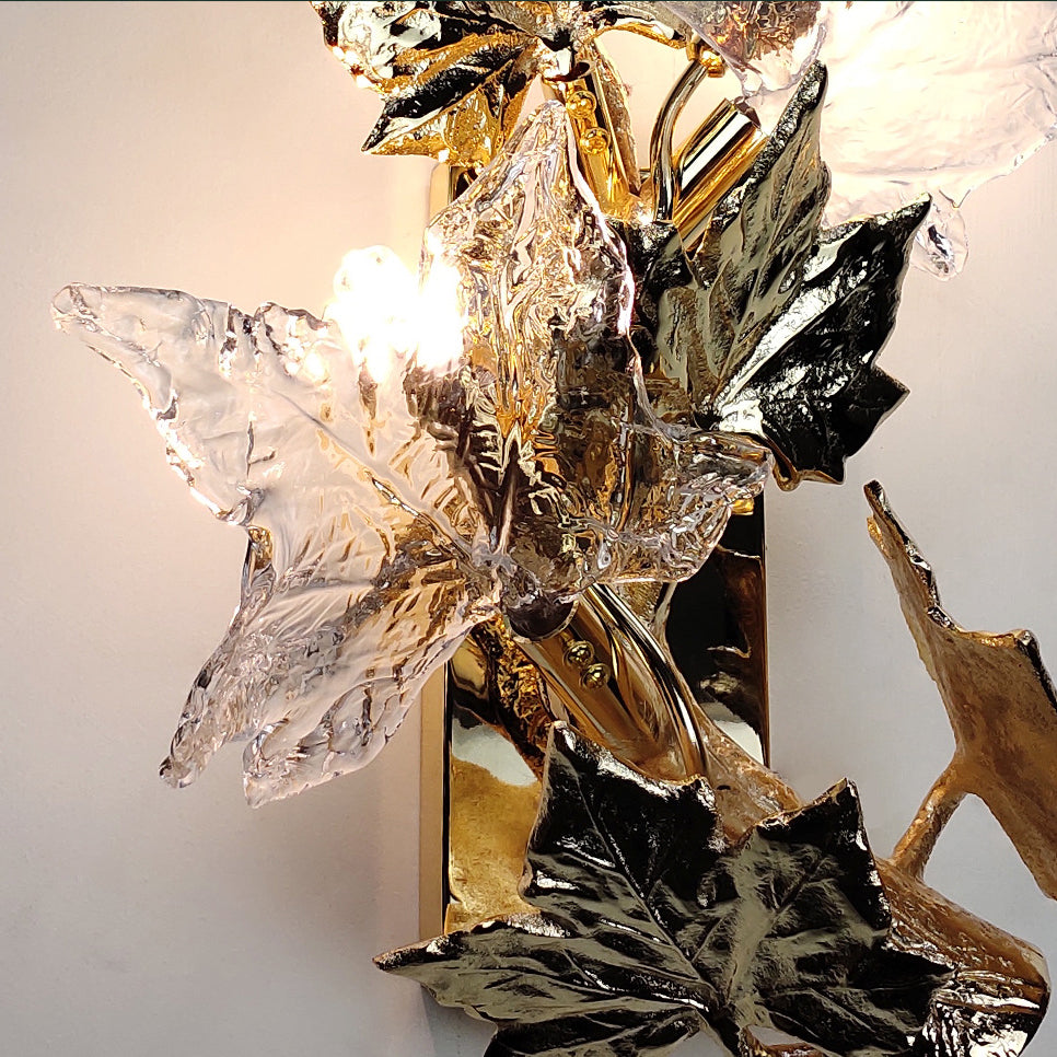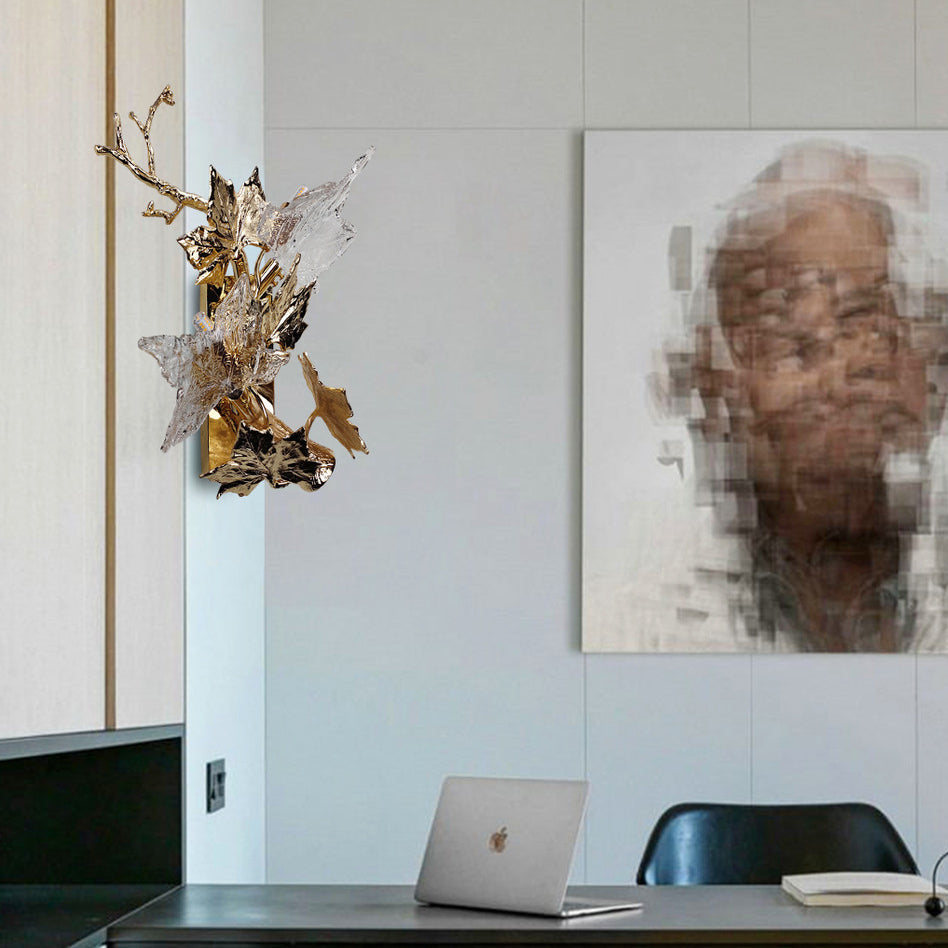 Modern Luxury Copper Colored Glass Maple Leaf Branch 2-Light Wall Sconce Lamp For Living Room