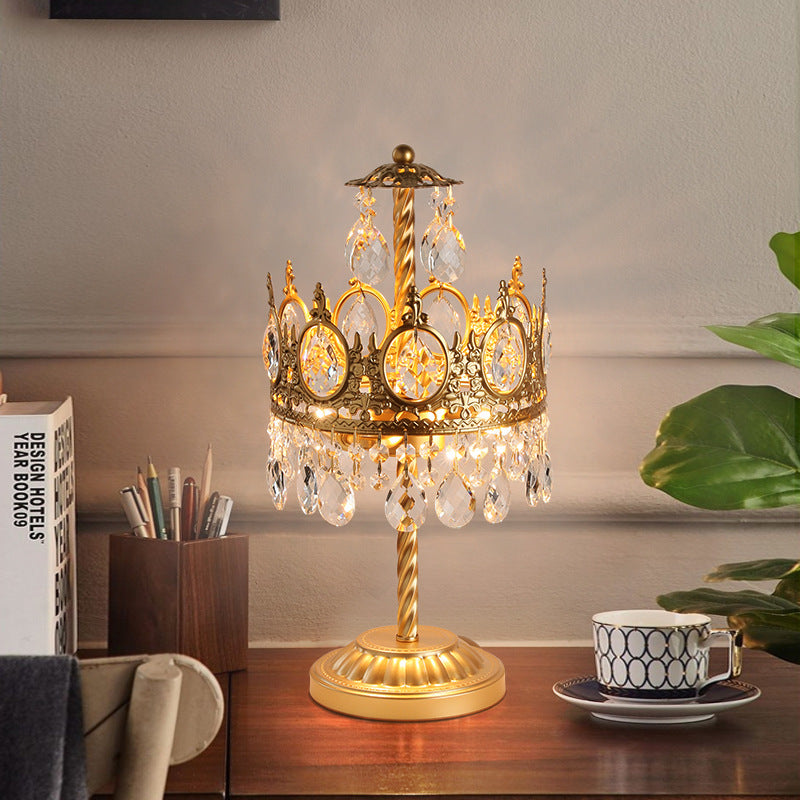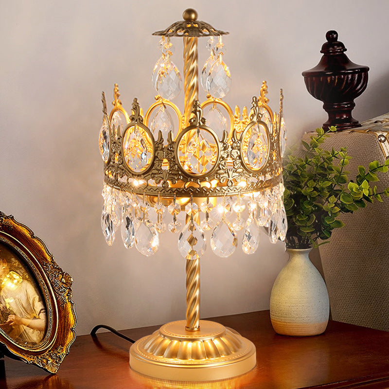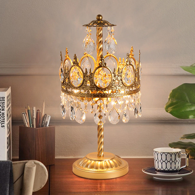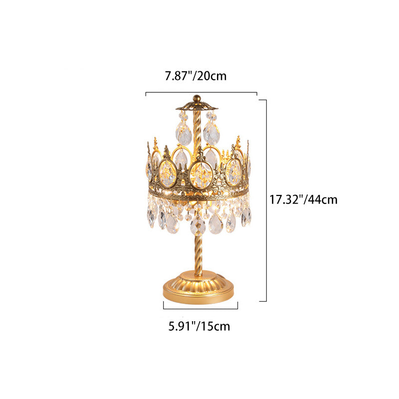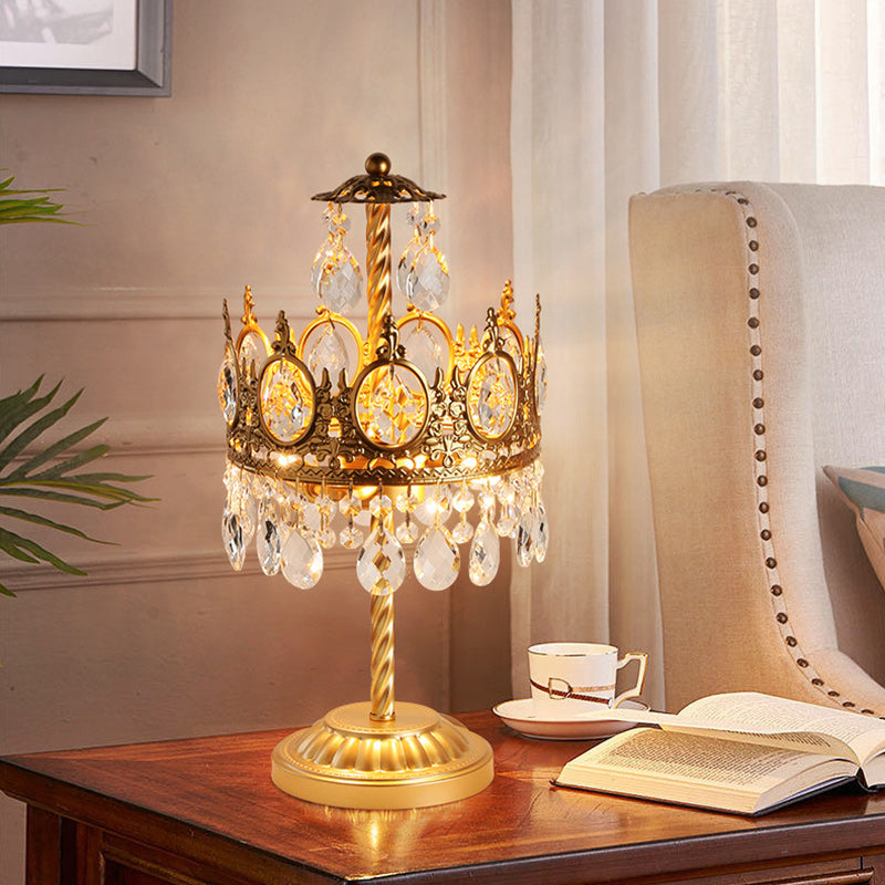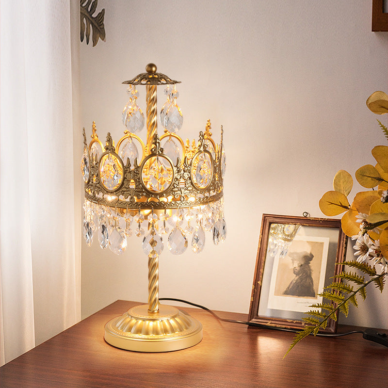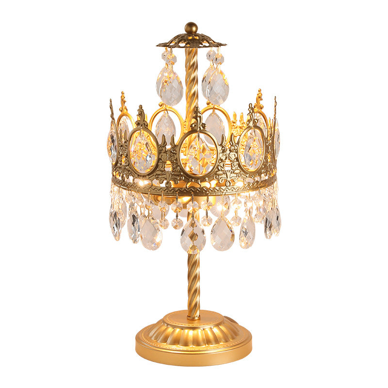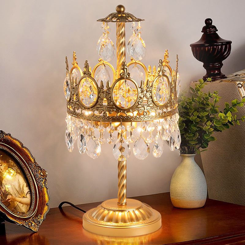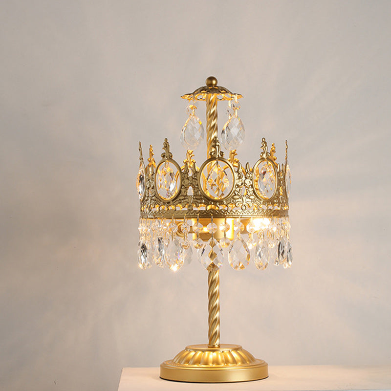 Modern Luxury Crown Iron Crystal 2-Light Table Lamp For Bedroom