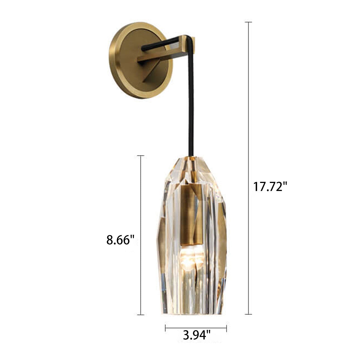 Modern Luxury Crystal Column Copper 1- Light Wall Sconce Lamp