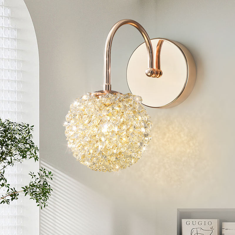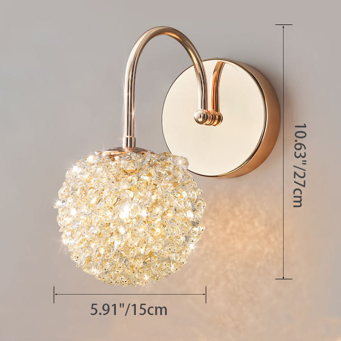 Modern Luxury Crystal Orb Hardware Frame 1-Light Wall Sconce Lamp For Living Room
