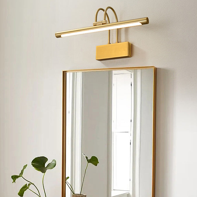 Modern Luxury Curved Pole Cylinder All Brass LED Vanity Light Wall Sconce Lamp For Bathroom