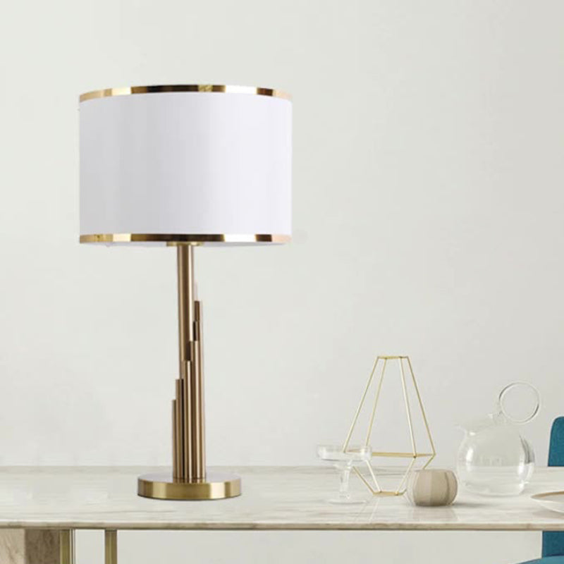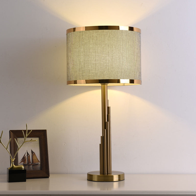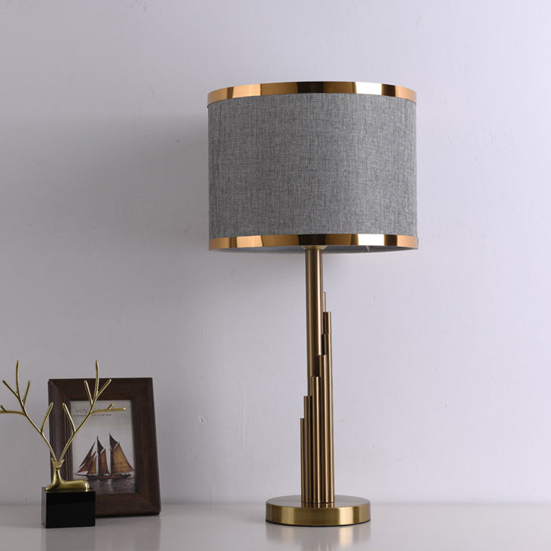 Modern Luxury Cylinder Metal Fabric 1-Light Table Lamp For Bedroom