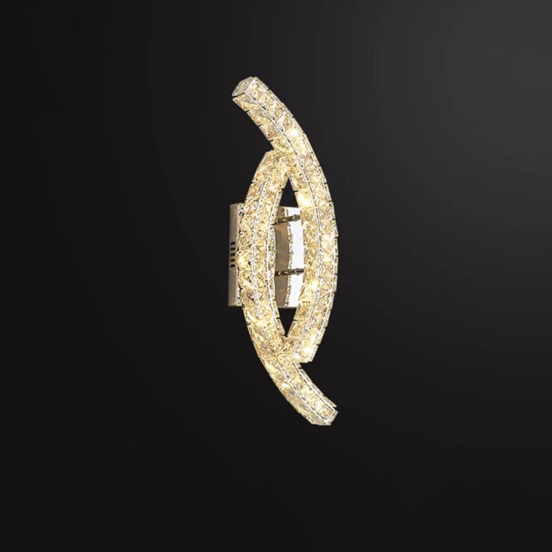 Modern Luxury Double Arc Stainless Steel Crystal LED Wall Sconce Lamp For Bedroom