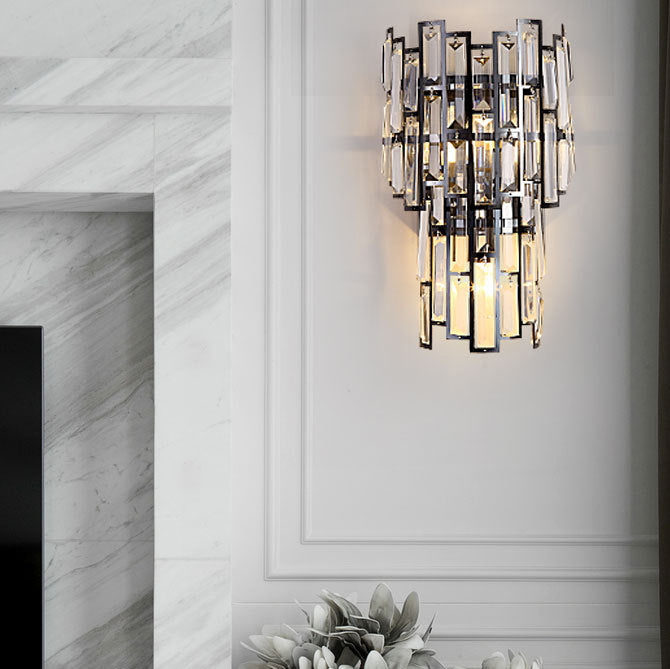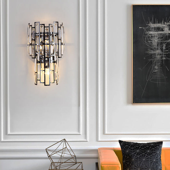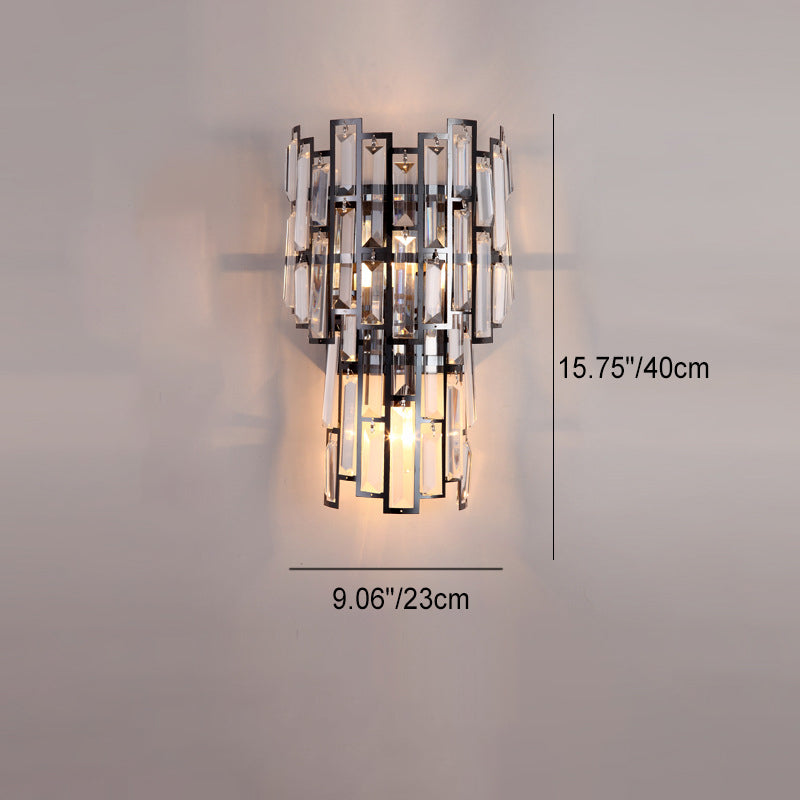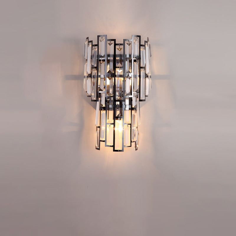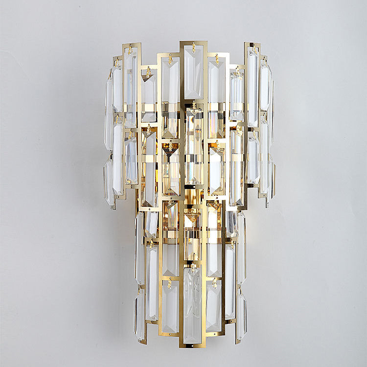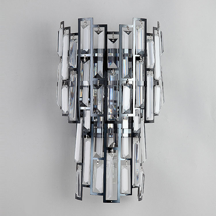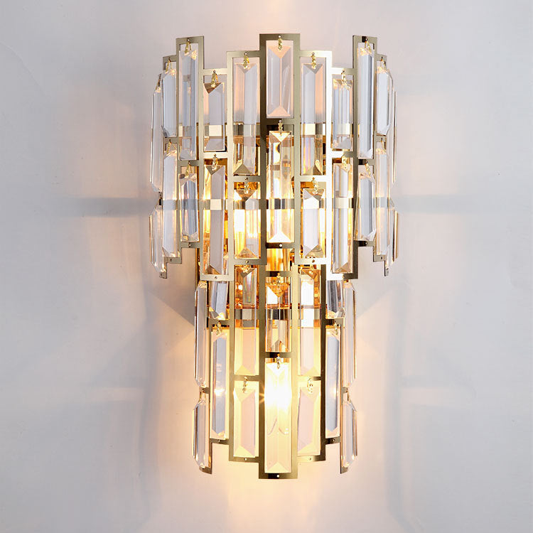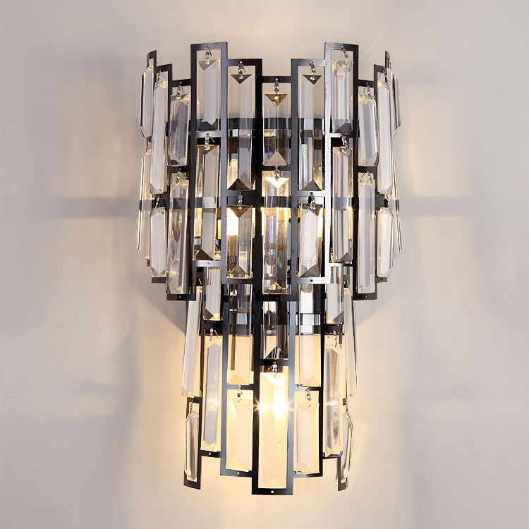 Modern Luxury Double Half Cylinder Stainless Steel Crystal 3-Light Wall Sconce Lamp For Living Room
