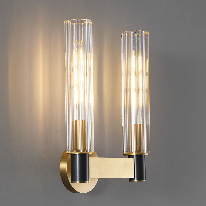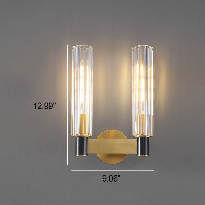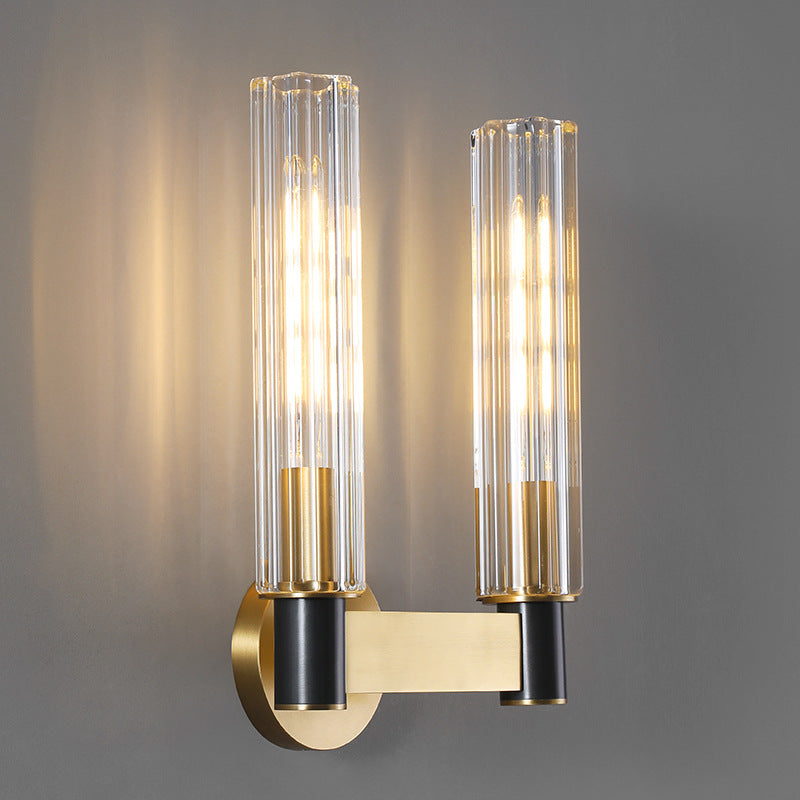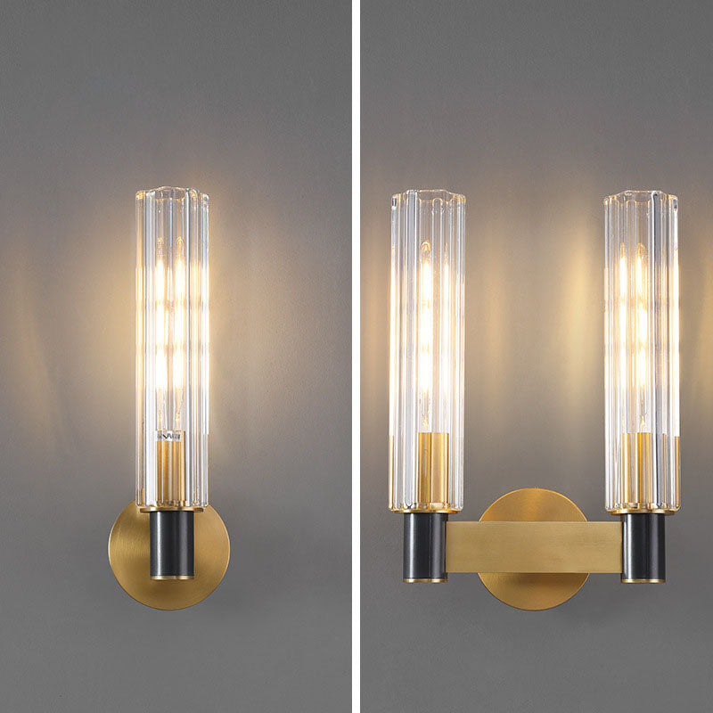 Modern Luxury Glass Cylinder Brass 1/2 Light Wall Sconce Lamp