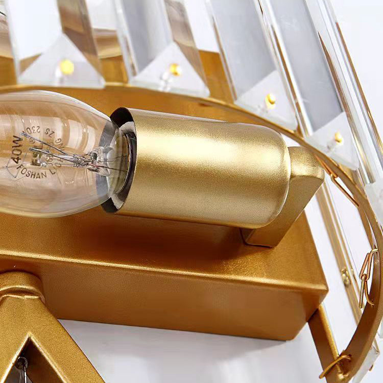Modern Luxury Half Circle Striped Iron Crystal 2-Light Wall Sconce Lamp For Living Room