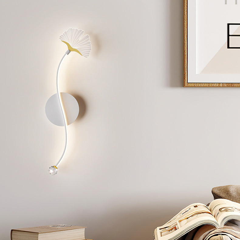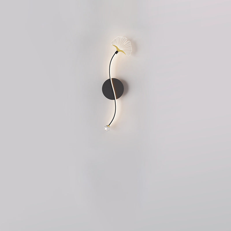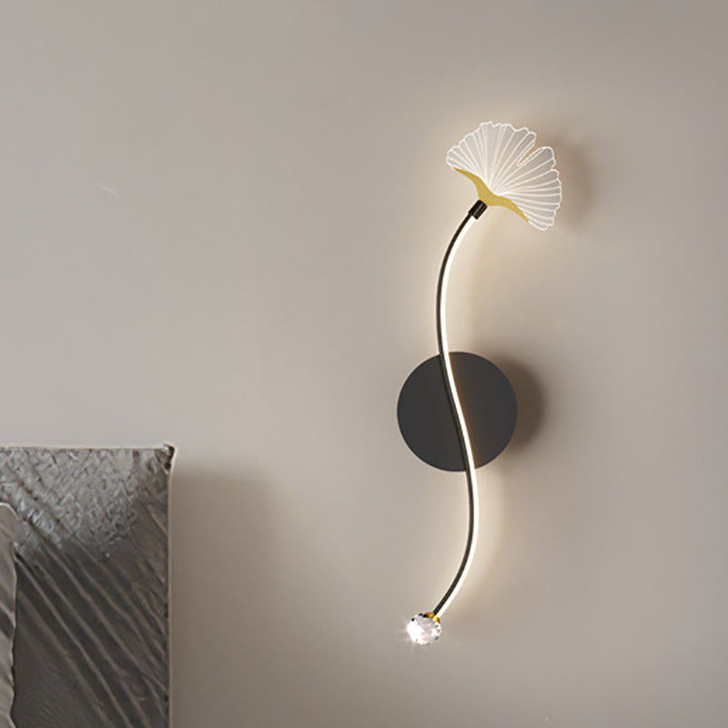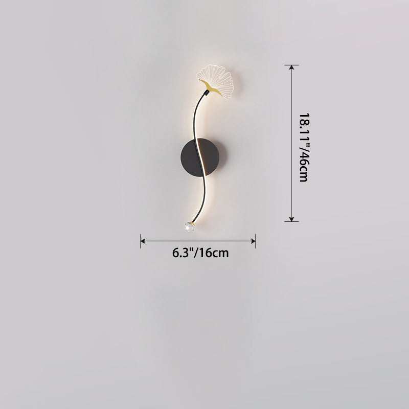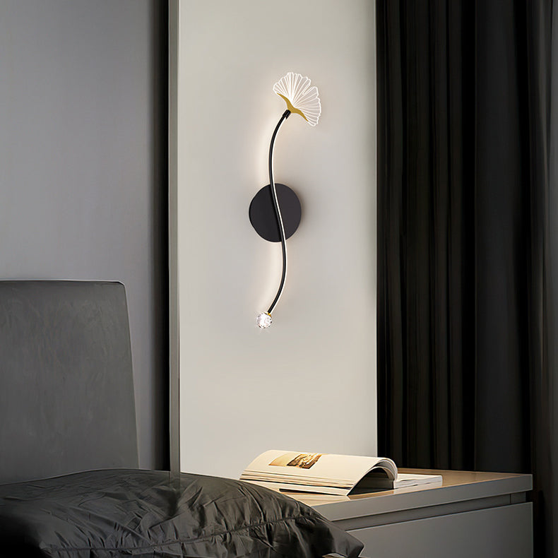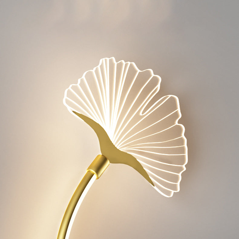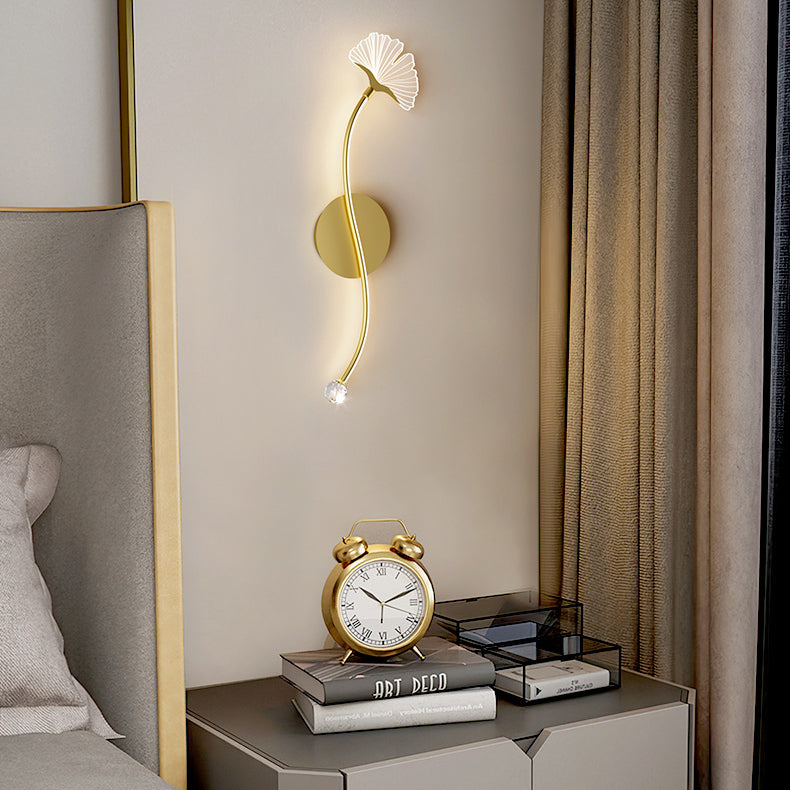 Modern Luxury Iron Aluminum Acrylic Line Ginkgo Leaf LED Wall Sconce Lamp For Bedside