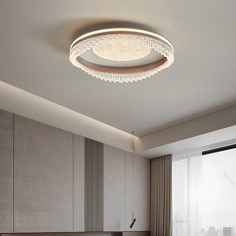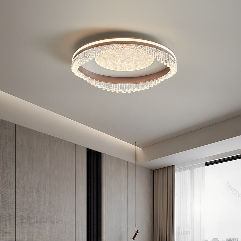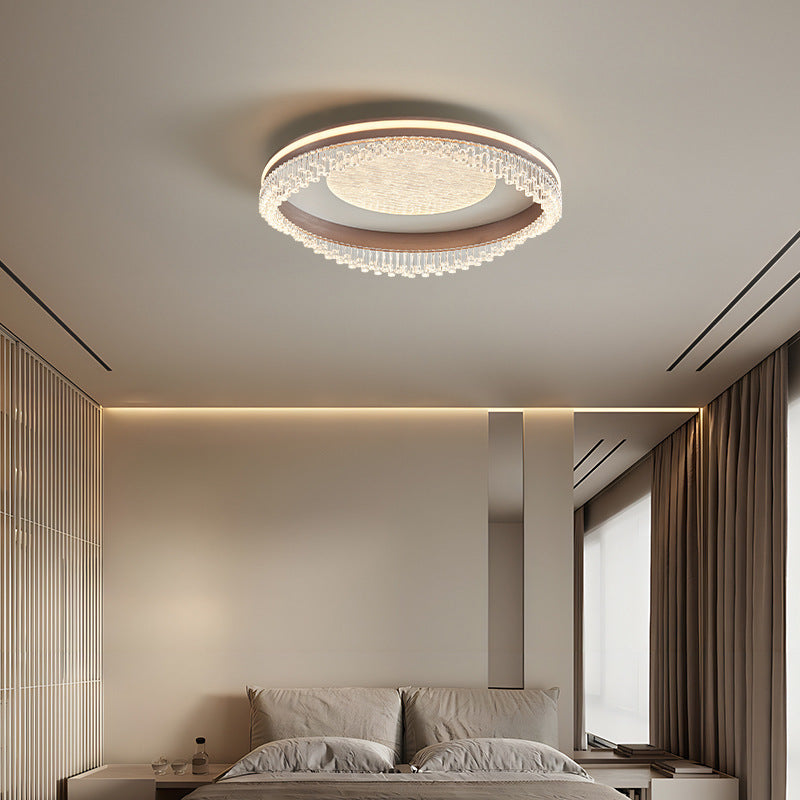 Modern Luxury Iron Aluminum Acrylic Round Pillar LED Flush Mount Ceiling Light For Bedroom