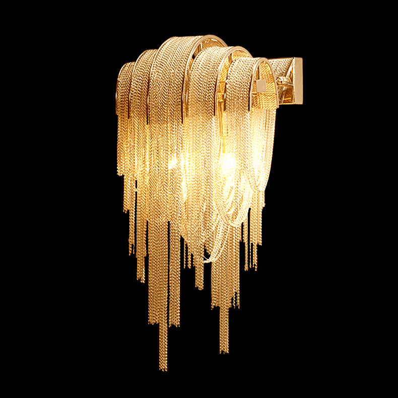 Modern Luxury Iron Aluminum Tassel Chain 2/4 Light Wall Sconce Lamp For Hallway