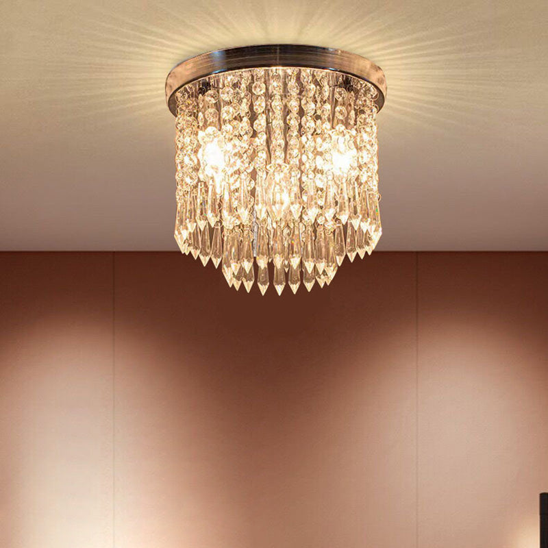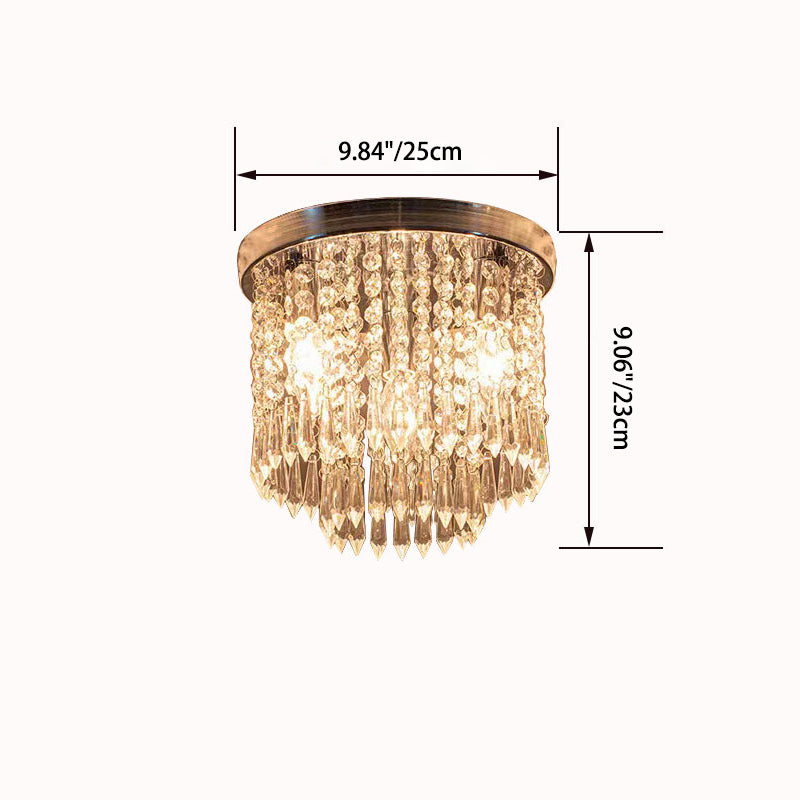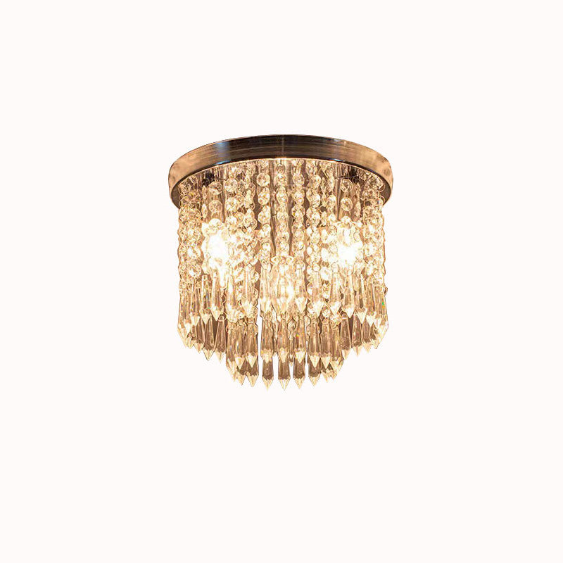 Modern Luxury Iron Crystal String 4-Light Flush Mount Ceiling Light For Living Room