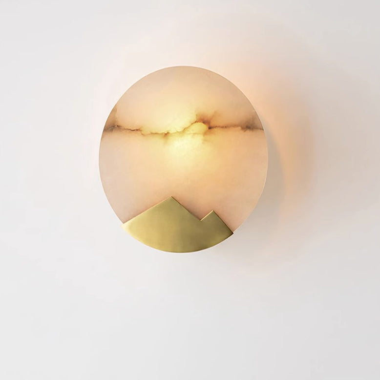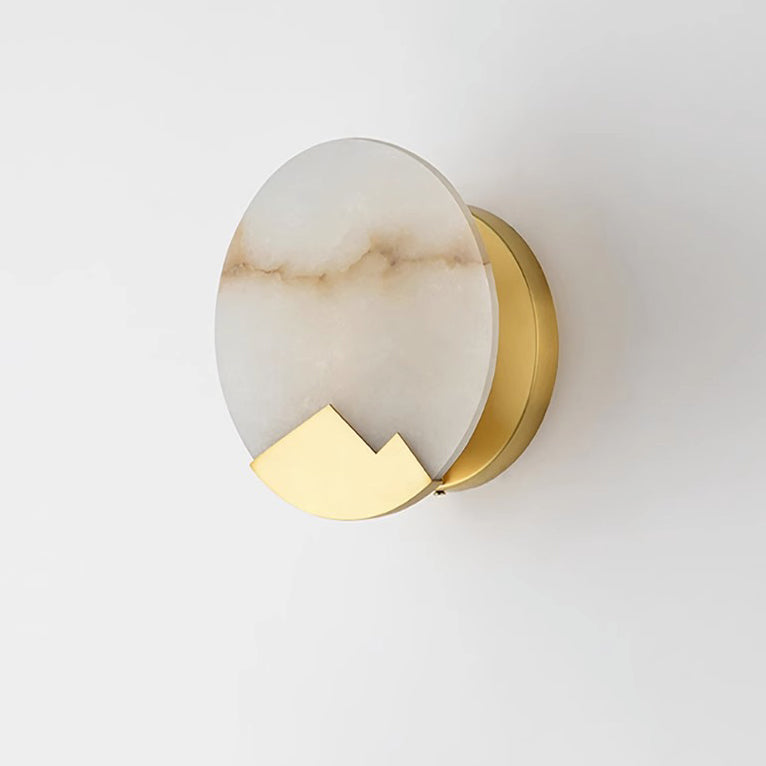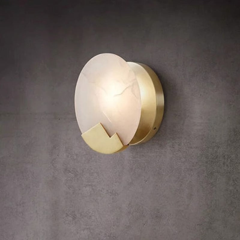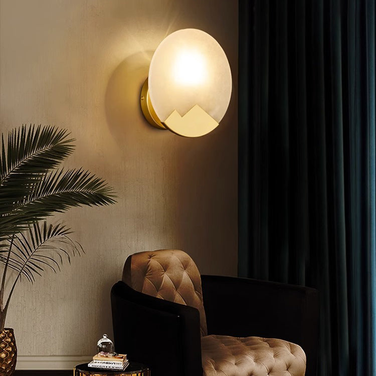 Modern Luxury Marble Round Shade Gold Finish Frame 1-Light Wall Sconce Lamp For Bedroom