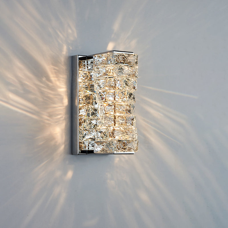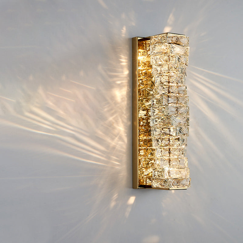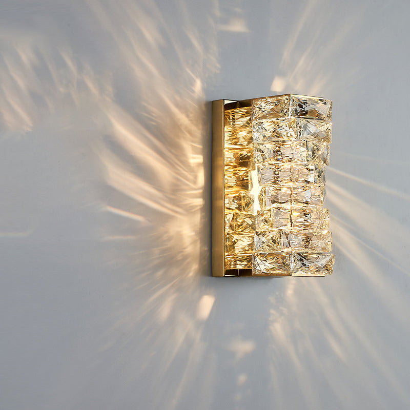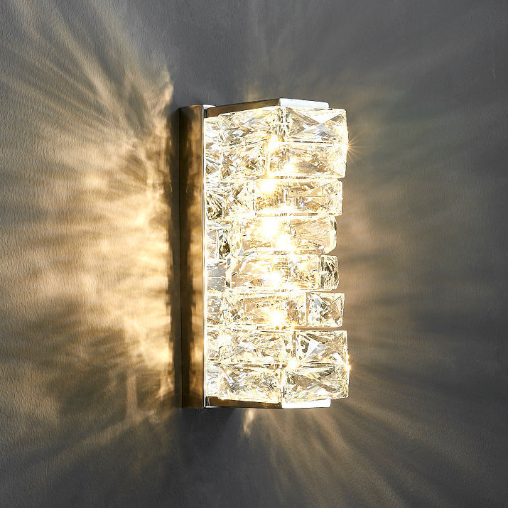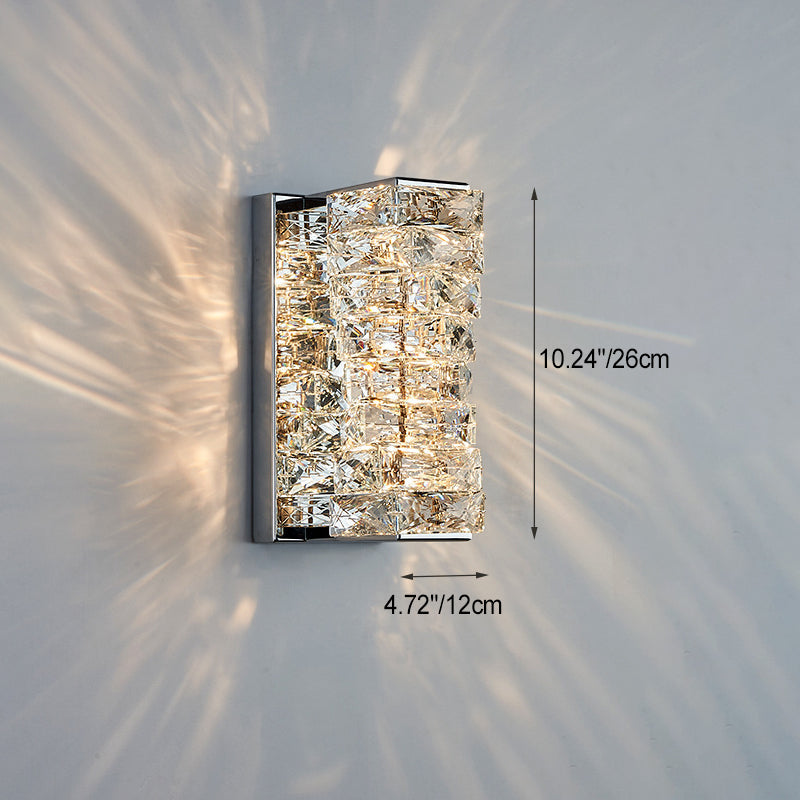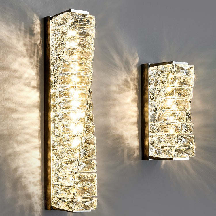 Modern Luxury Rectangle Block Hardware Crystal LED Wall Sconce Lamp For Living Room