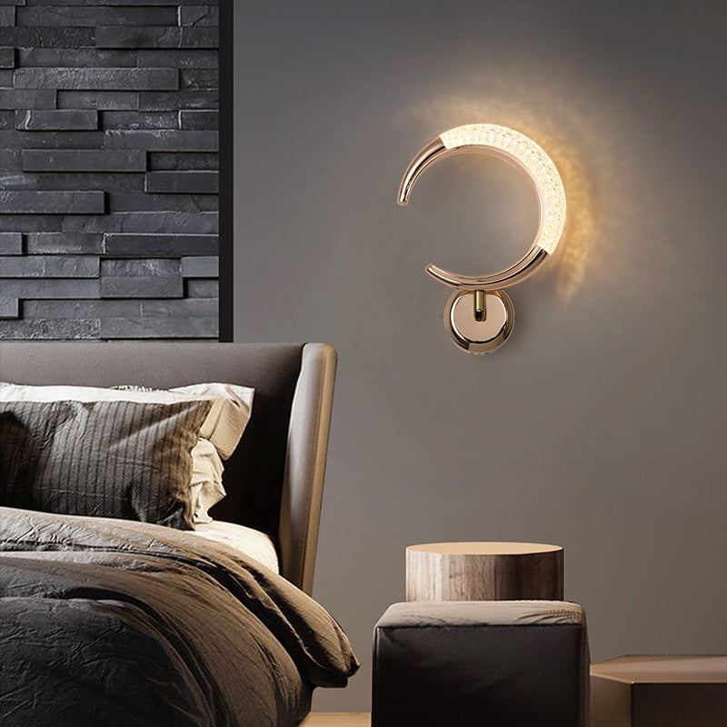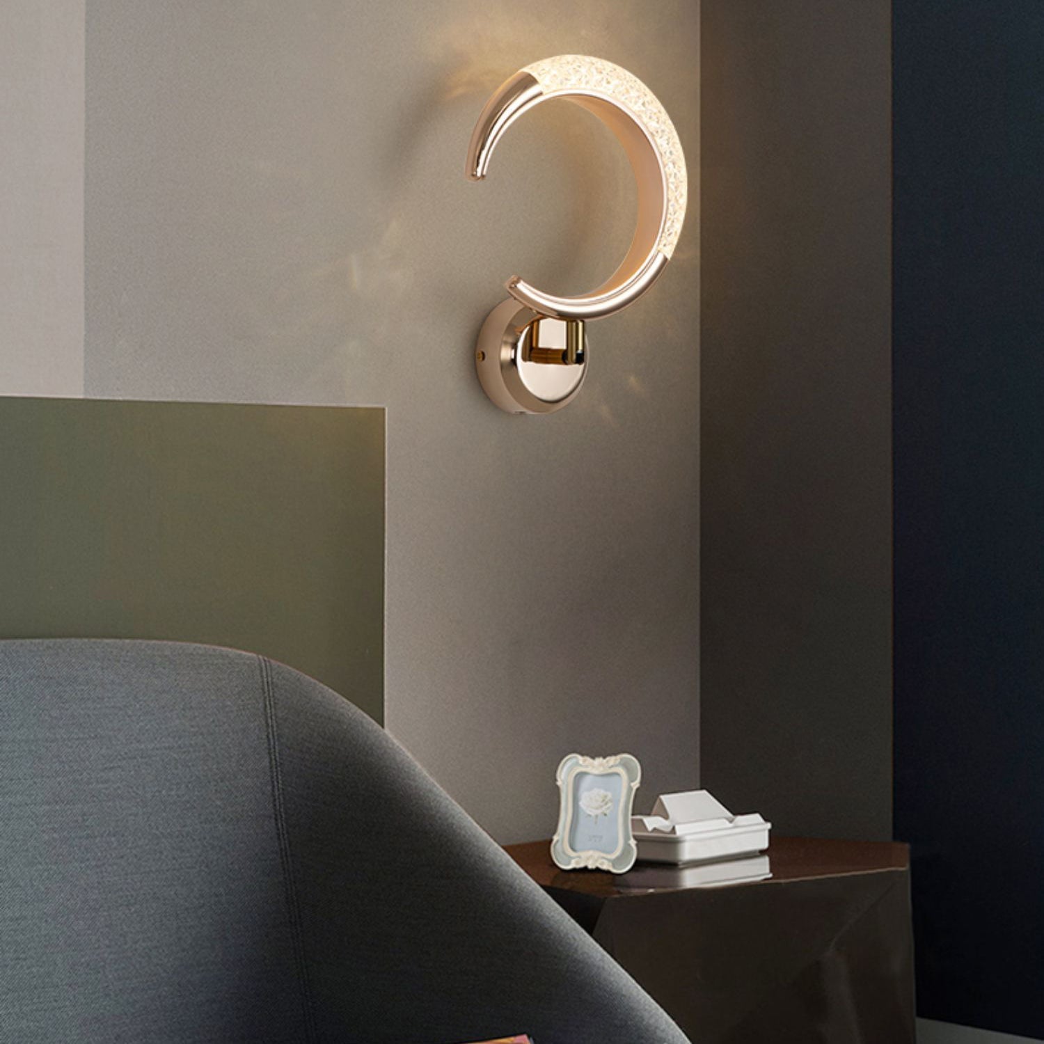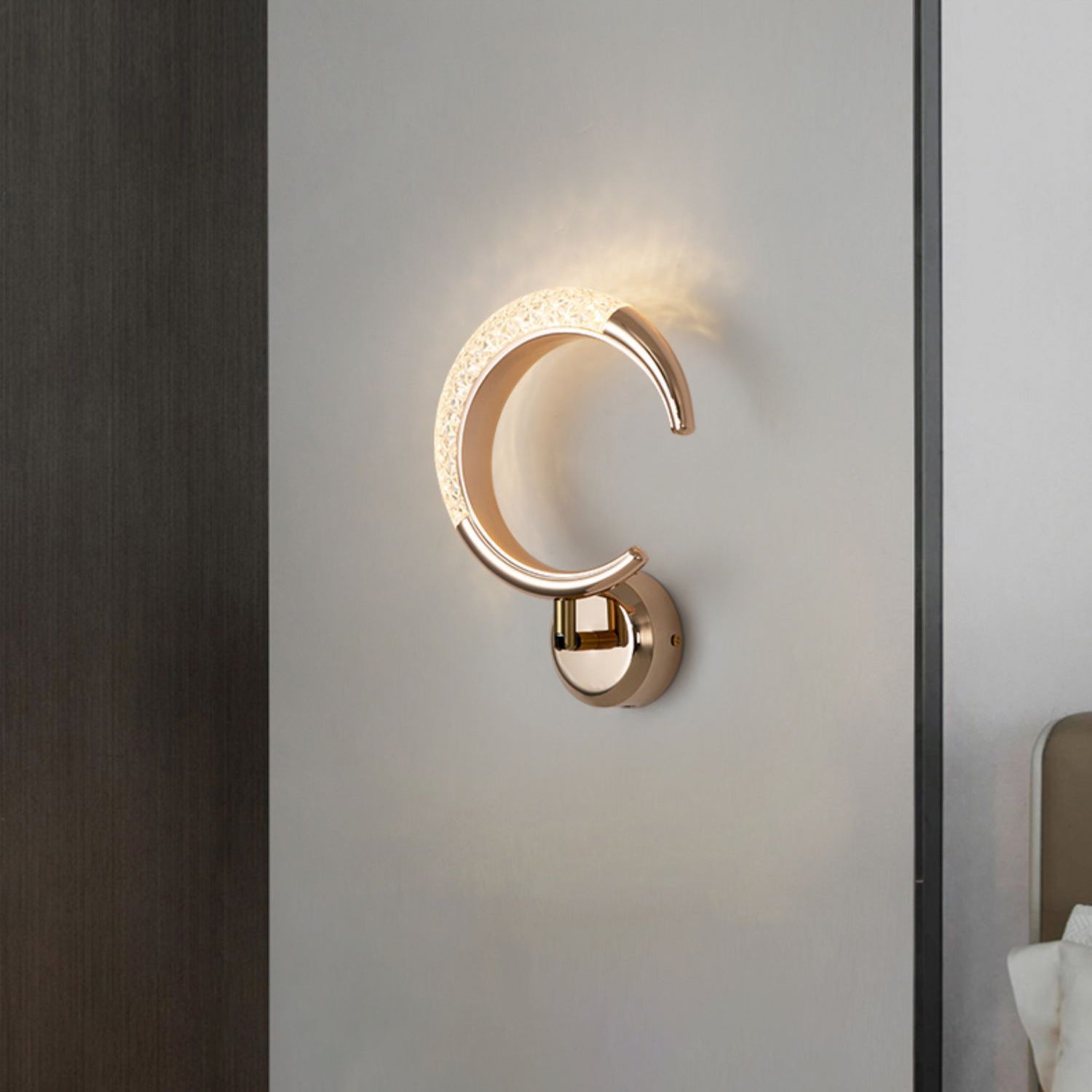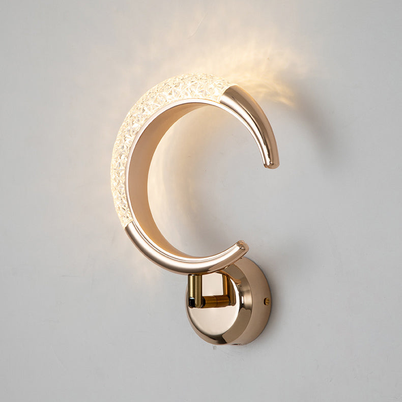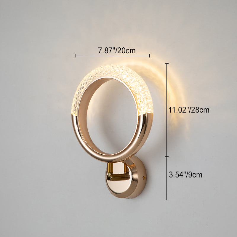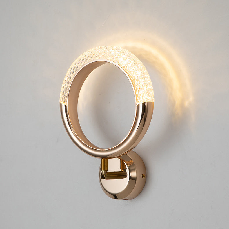 Modern Luxury Rose Gold Iron Circle Ring Acrylic Shade LED Wall Sconce Lamp For Bedroom
