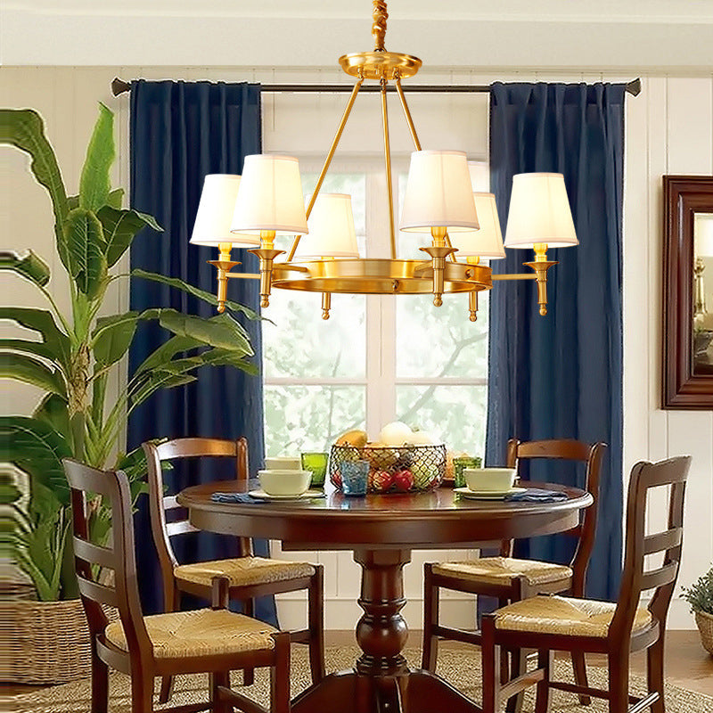 Modern Luxury Round Candelabra Copper Fabric 5/6/8/10 Light Chandelier For Living Room