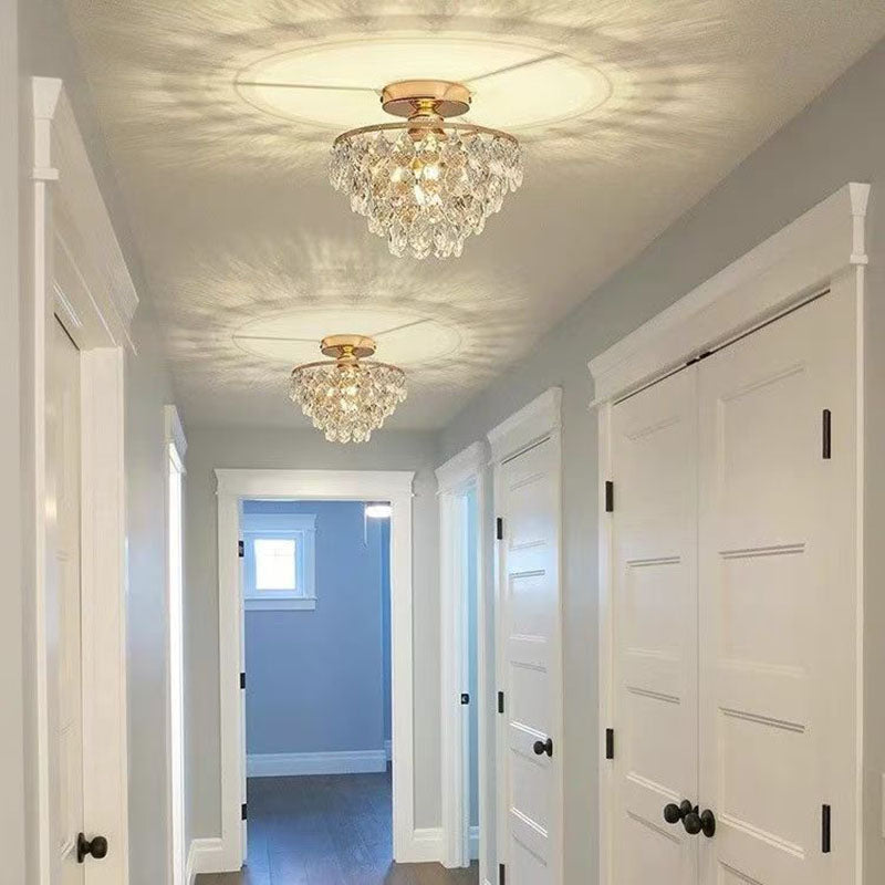 Modern Luxury Round Cone Teardrop Iron Crystal 1-Light Semi-Flush Mount Ceiling Light For Living Room