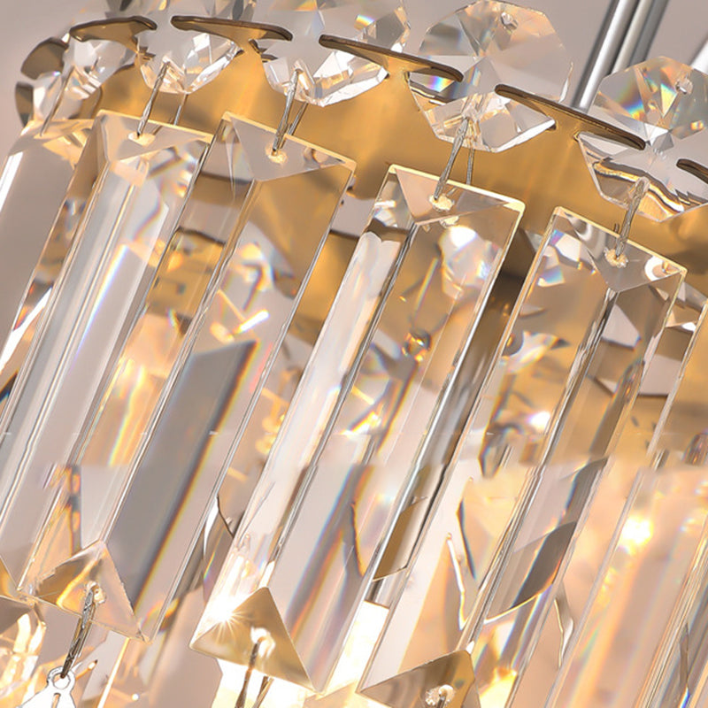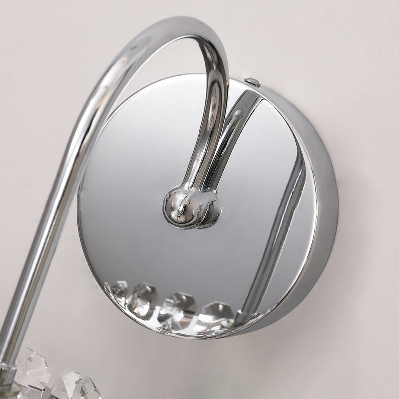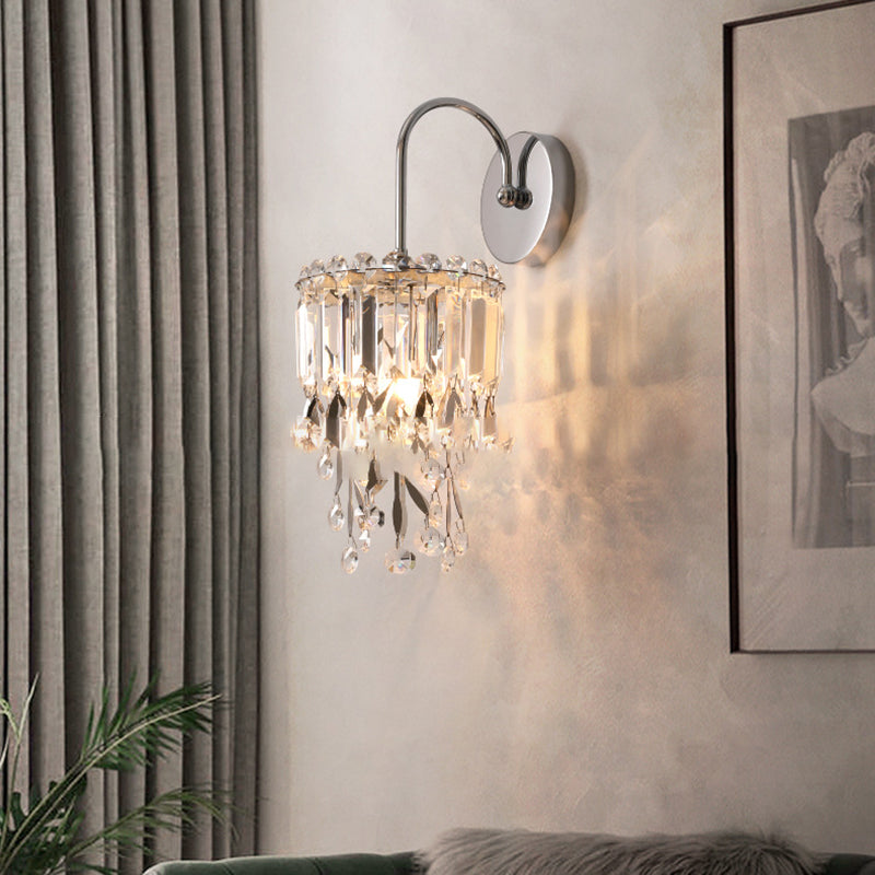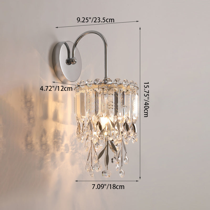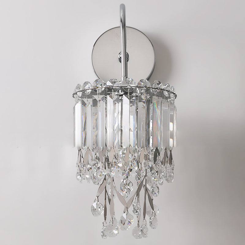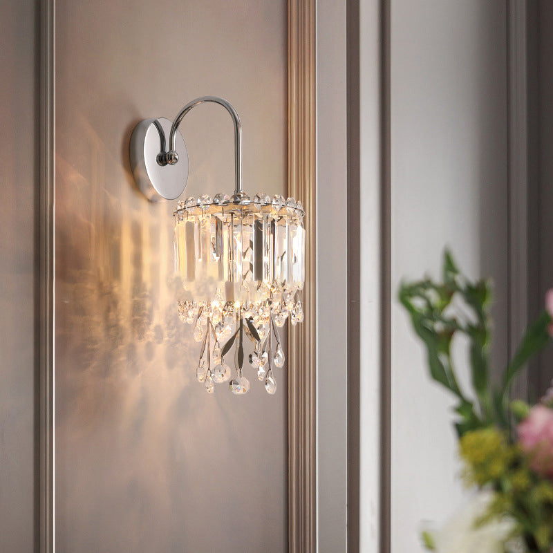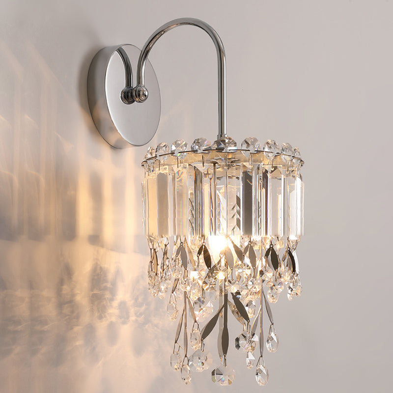 Modern Luxury Round Cylinder Hardware Stainless Steel Crystal 1-Light Wall Sconce Lamp For Bedroom