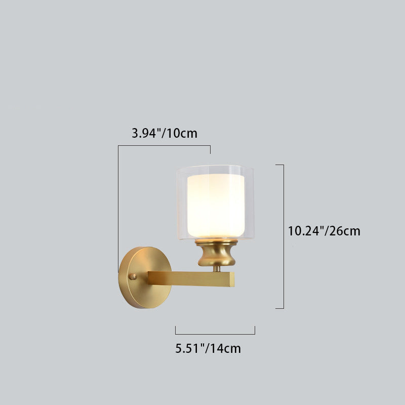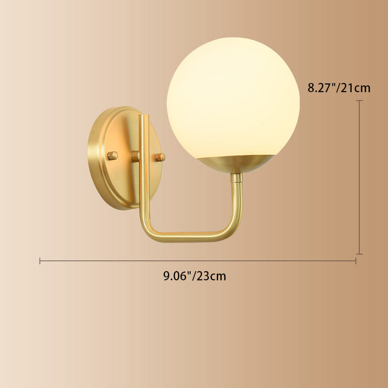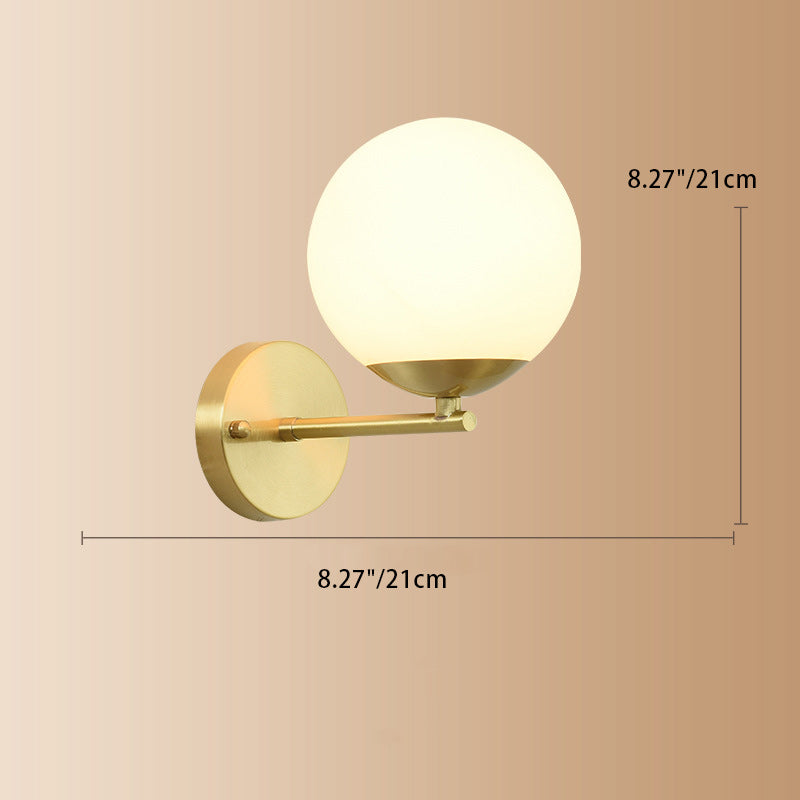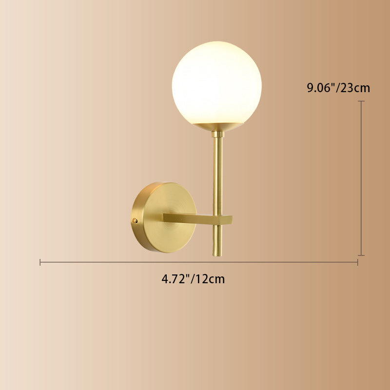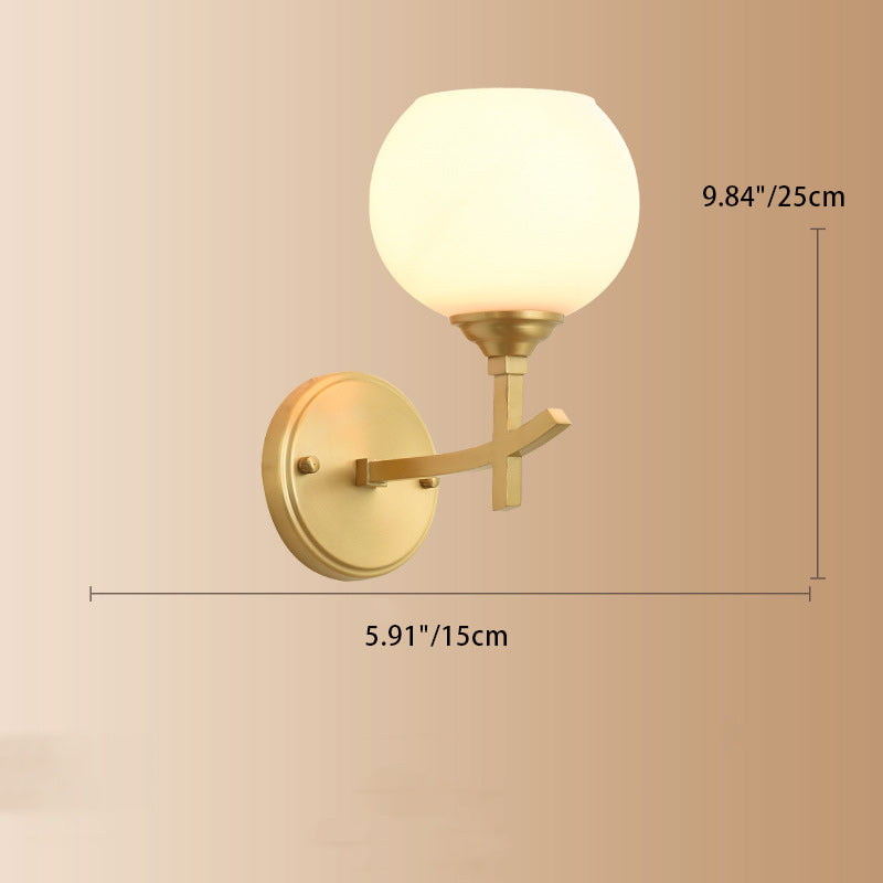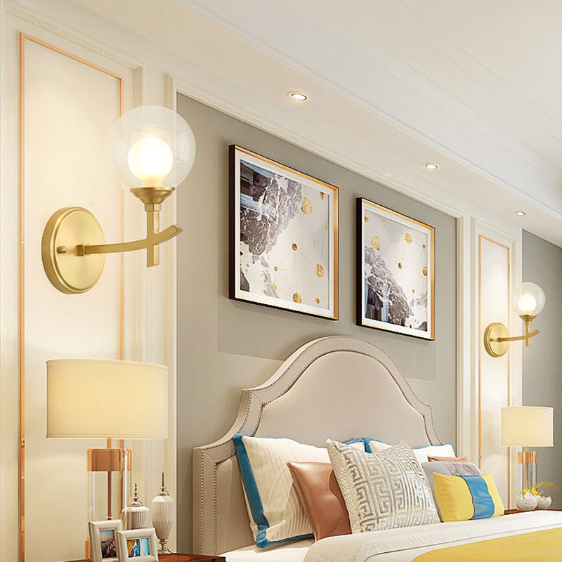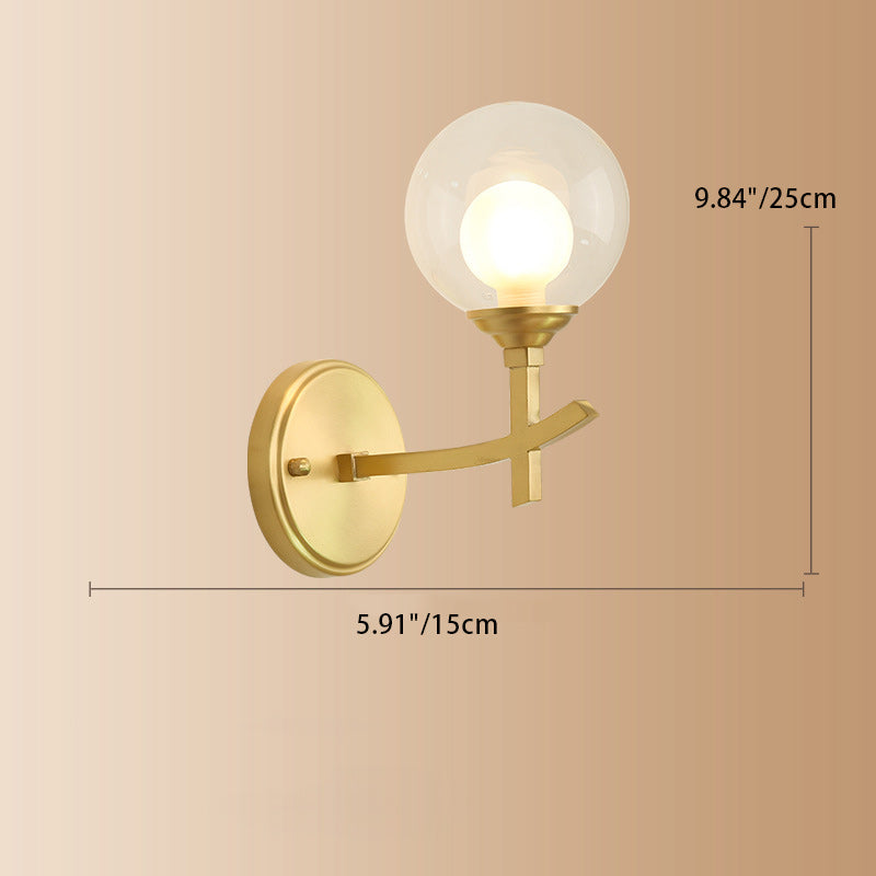 Modern Luxury Round Cylindrical Spherical Copper Glass 1-Light Wall Sconce Lamp For Bedroom