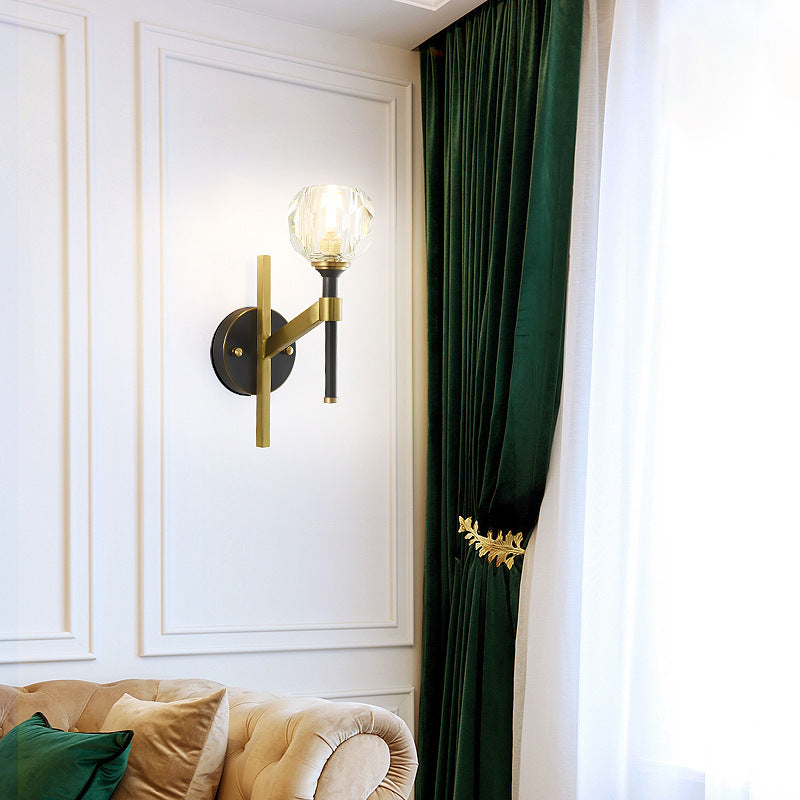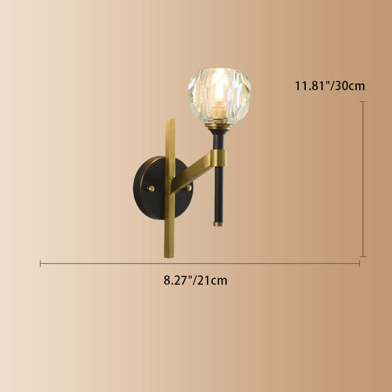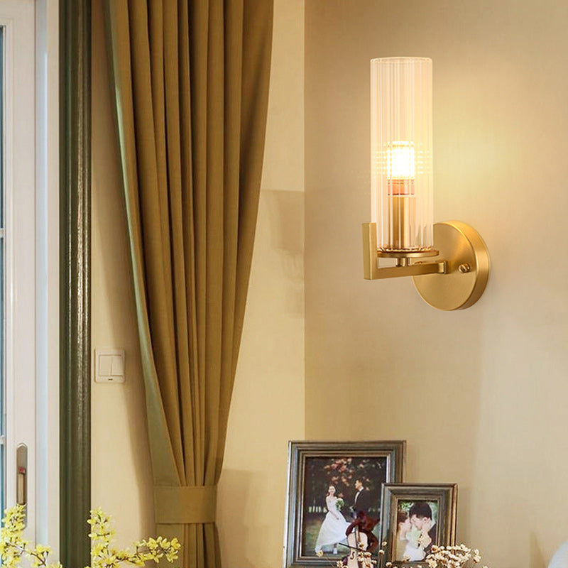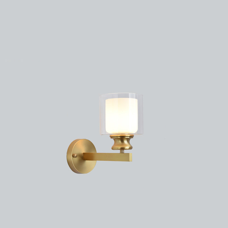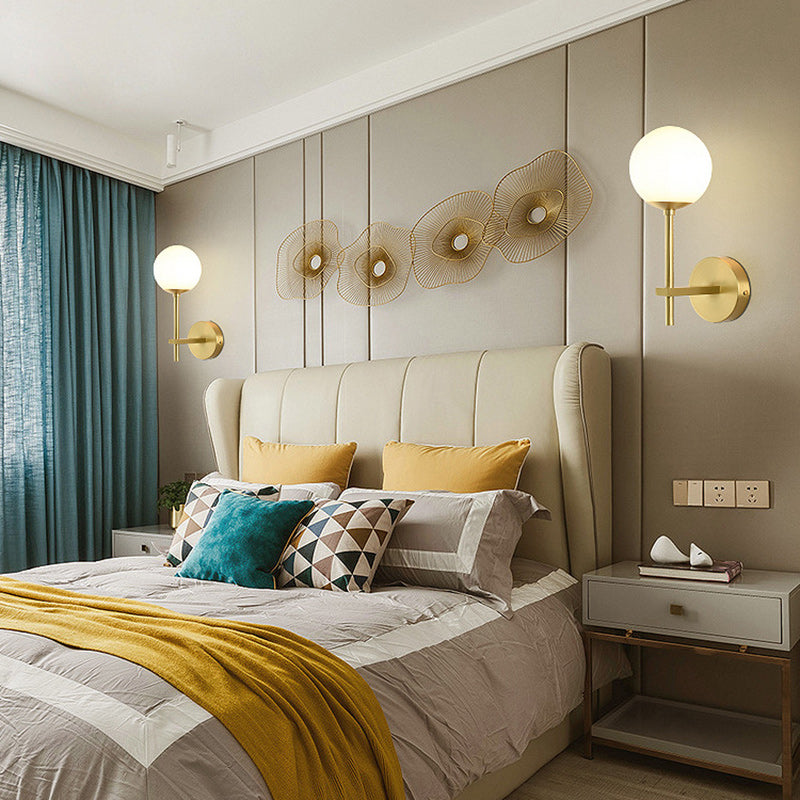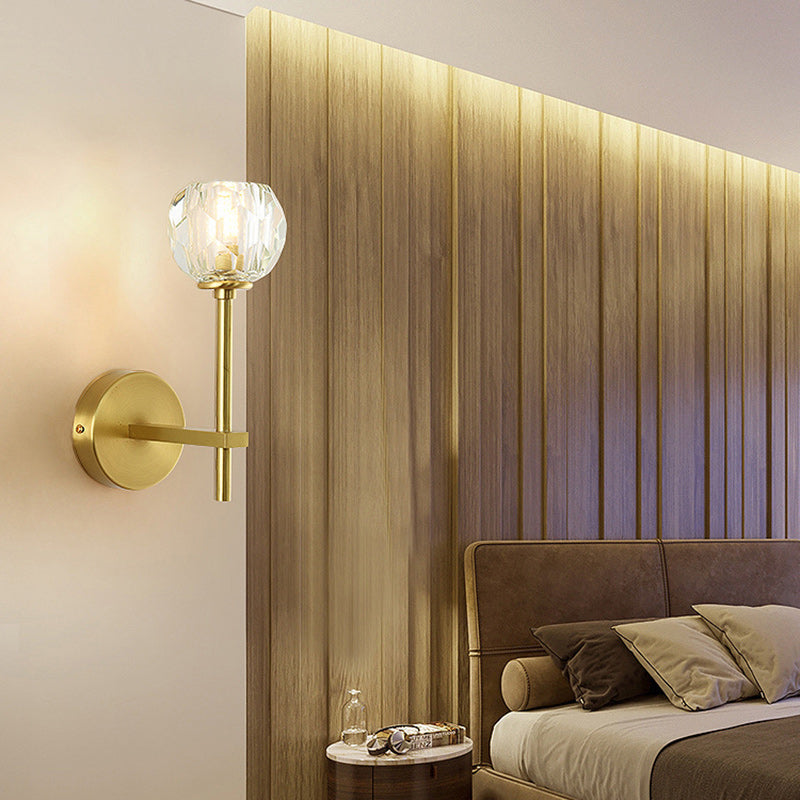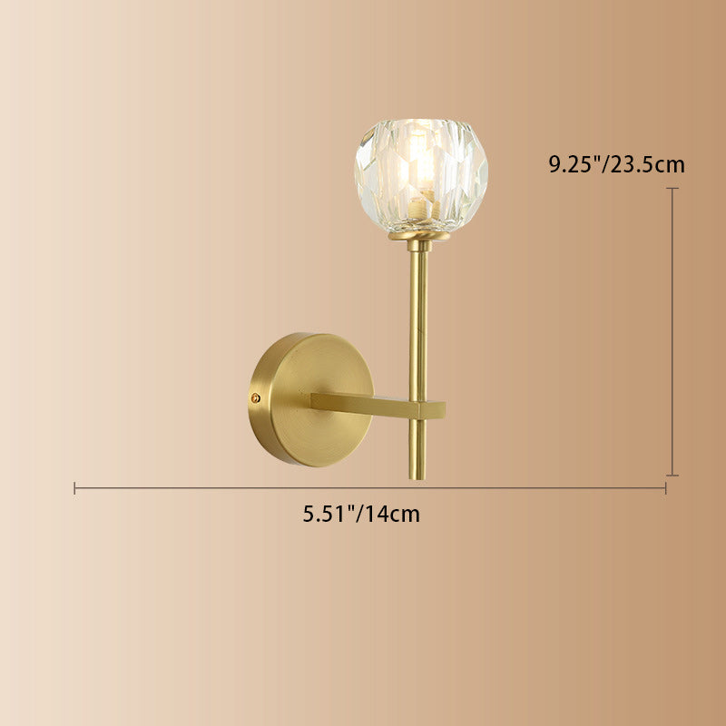 Modern Luxury Round Cylindrical Spherical Copper Glass 1-Light Wall Sconce Lamp For Bedroom