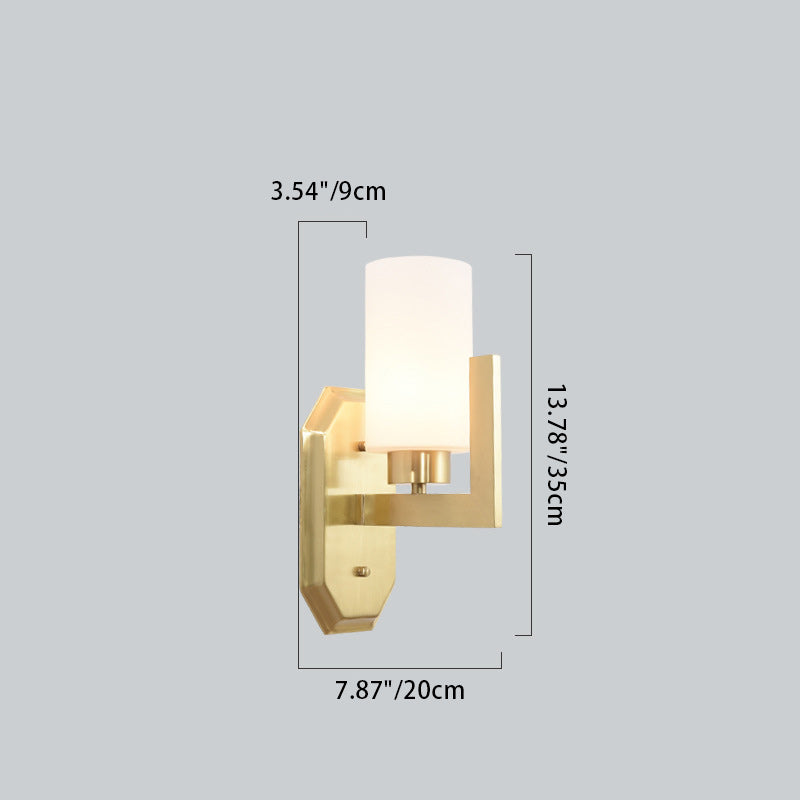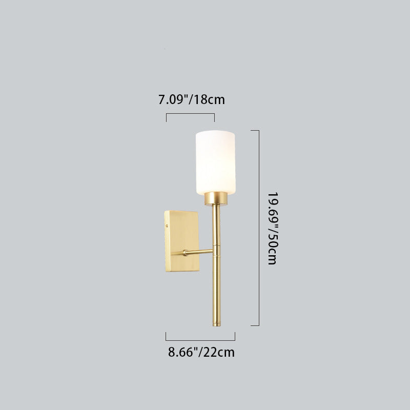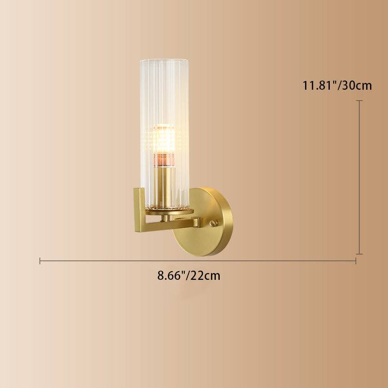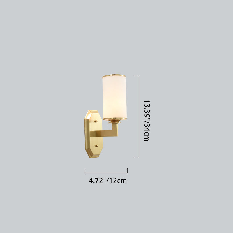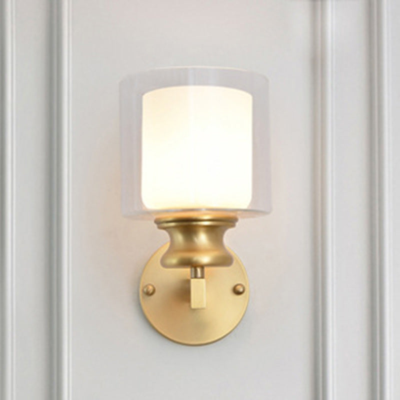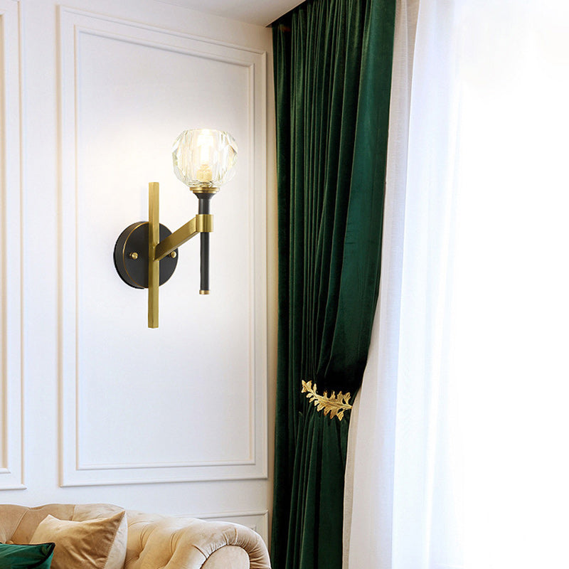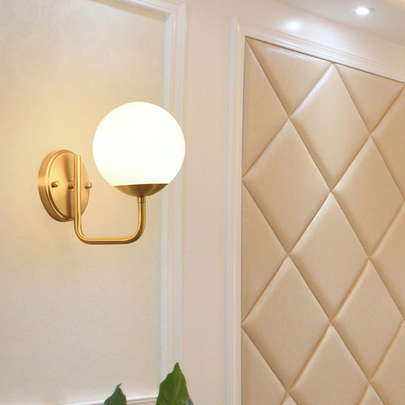 Modern Luxury Round Cylindrical Spherical Copper Glass 1-Light Wall Sconce Lamp For Bedroom