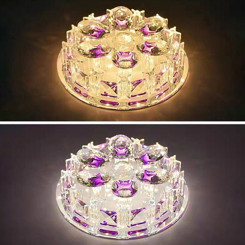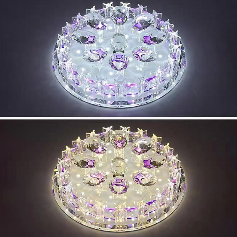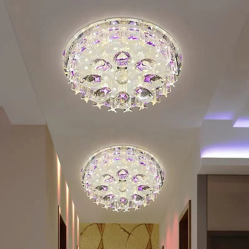 Modern Luxury Round Oval Crystal LED Flush Mount Ceiling Light For Hallway