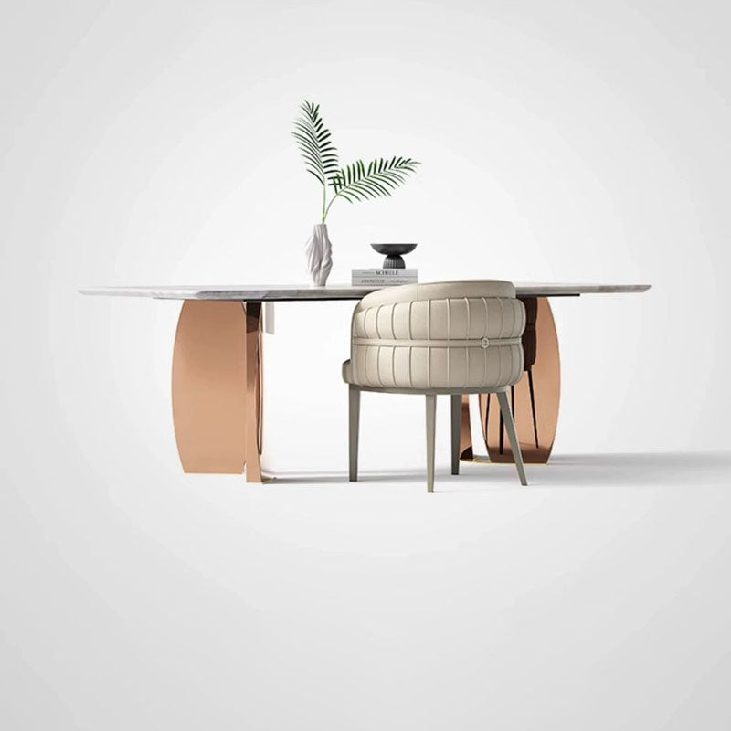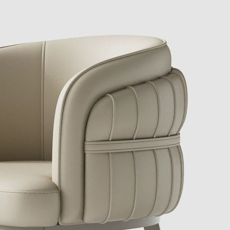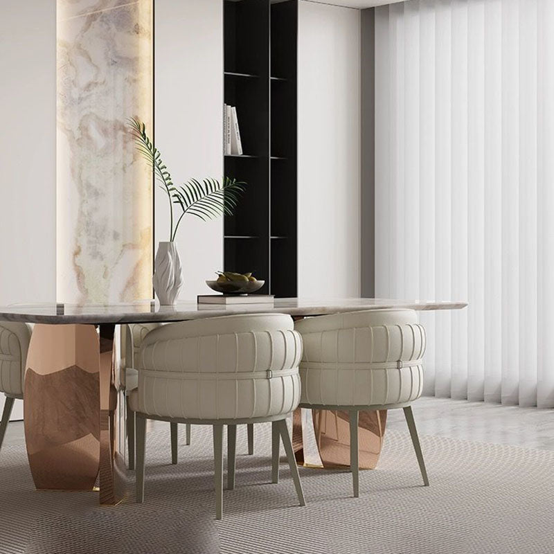 Modern Luxury Round Upholstered Faux Leather Carbon Steel Dining Chair Curved Backrest For Dining Room