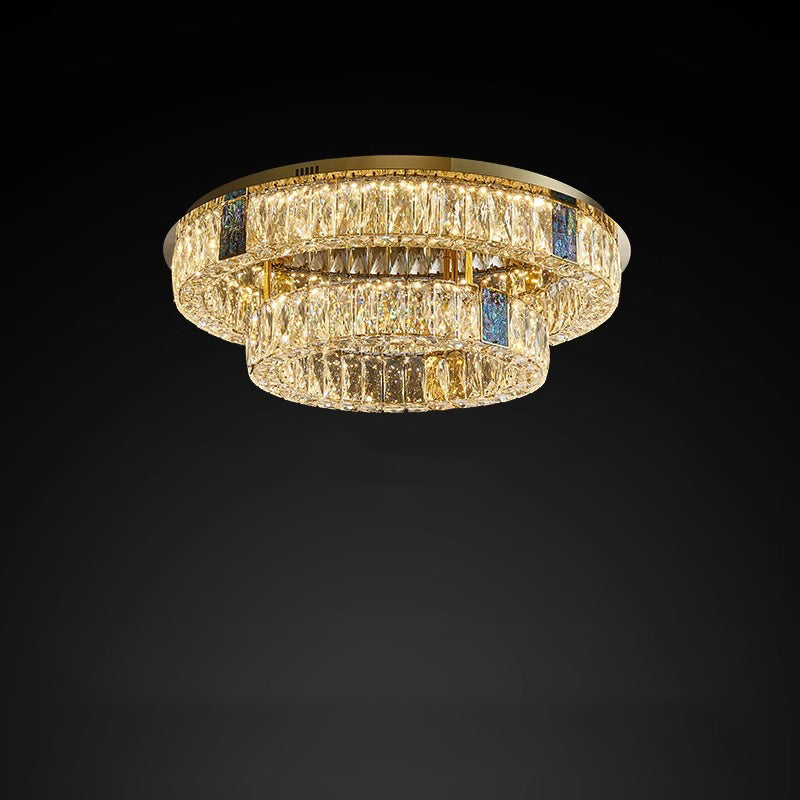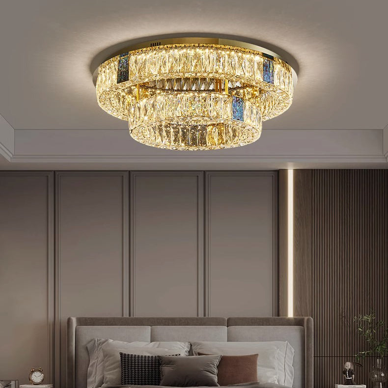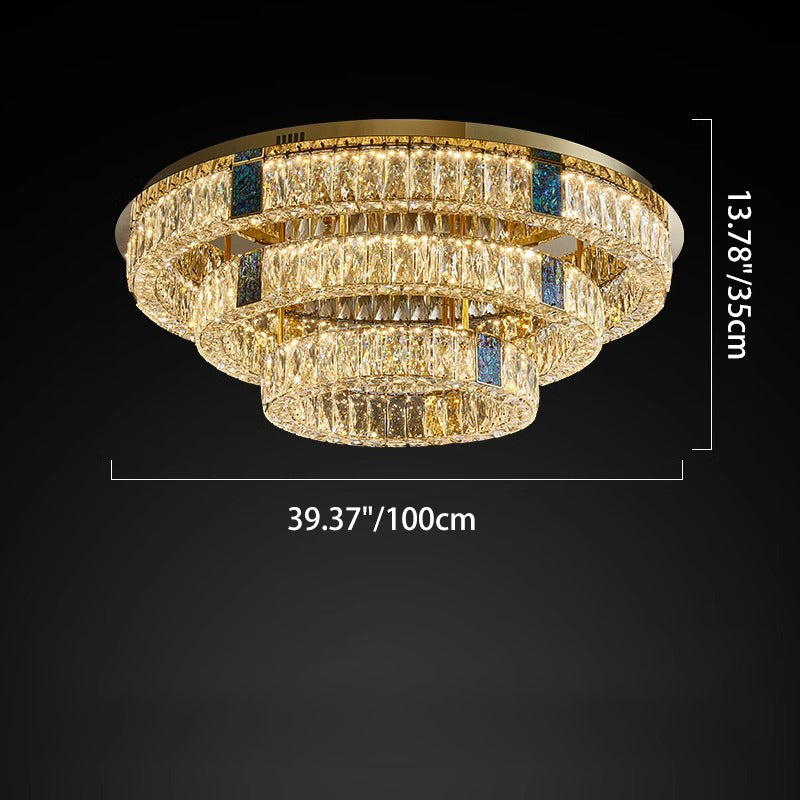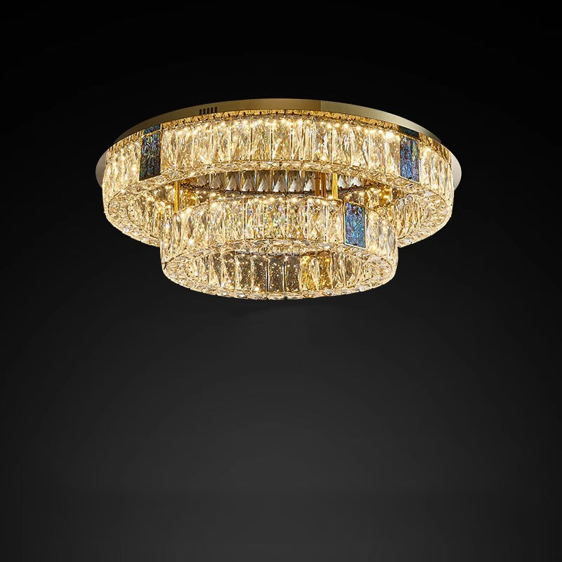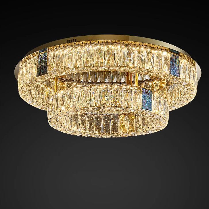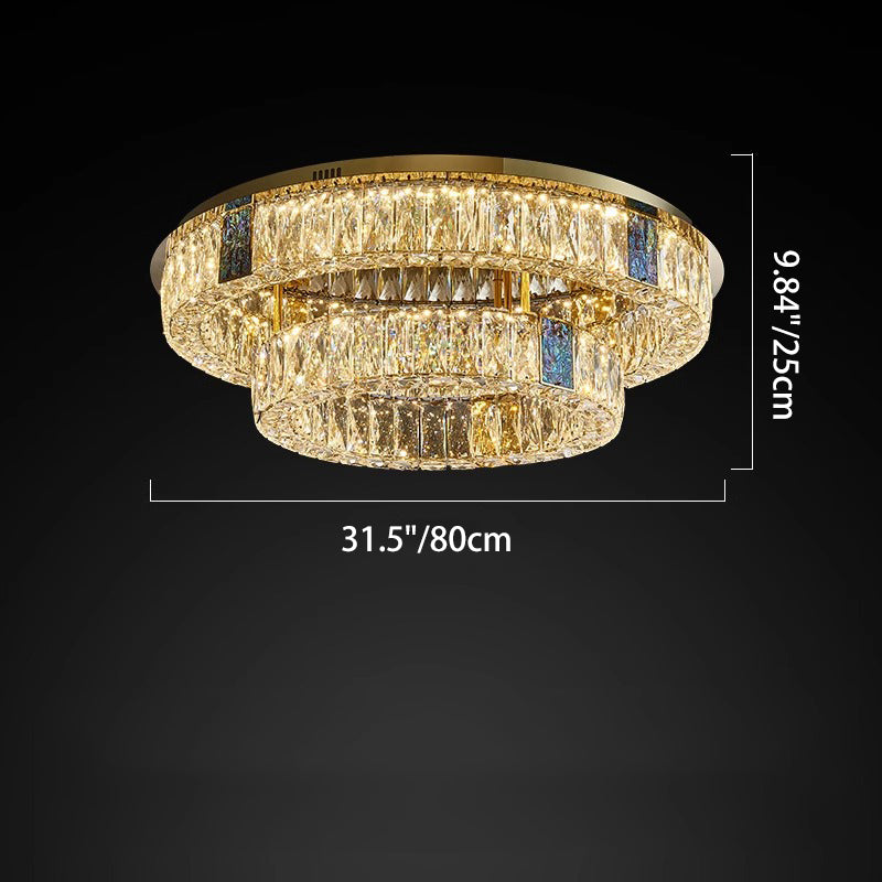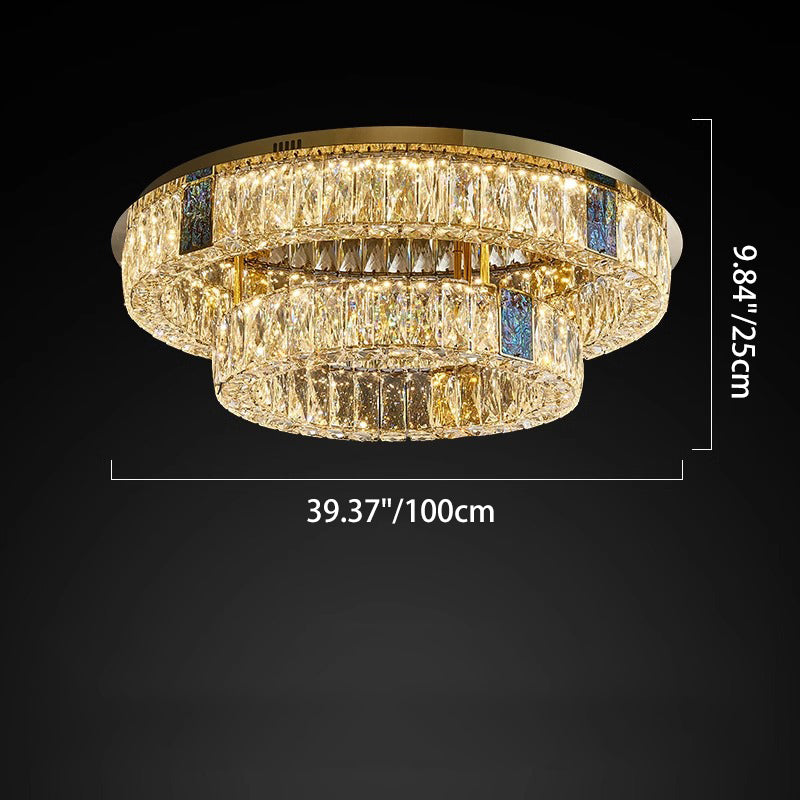 Modern Luxury Shell Stainless Steel & Crystal Round Multi-Layered LED Flush Mount Ceiling Light For Bedroom & Living Room