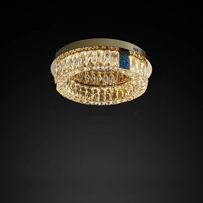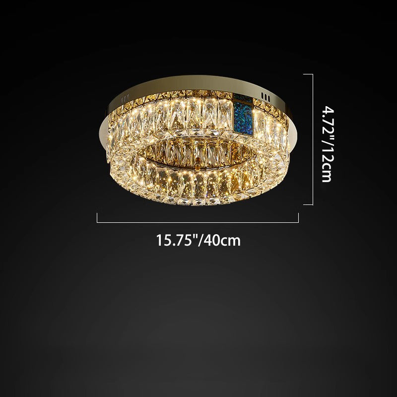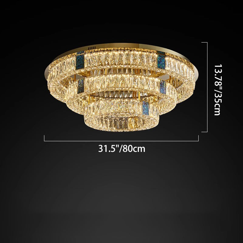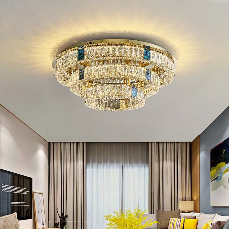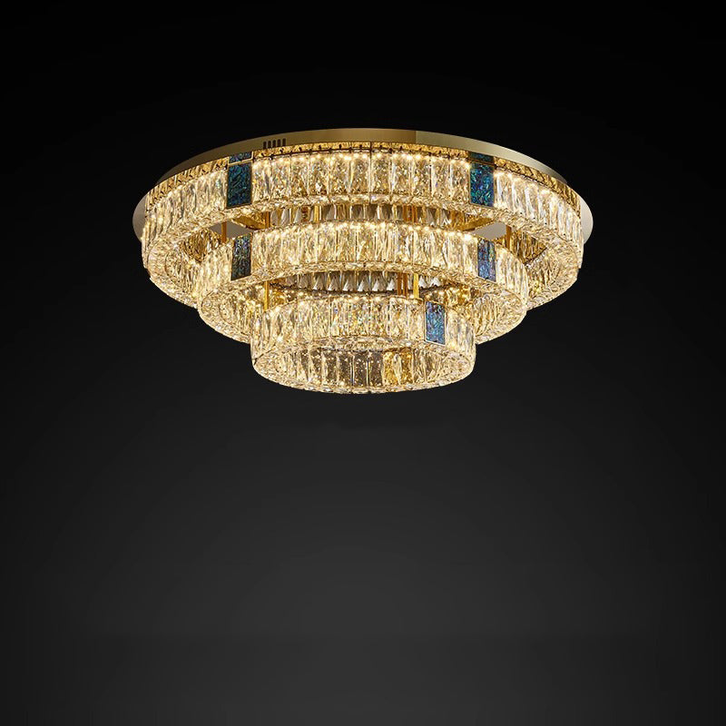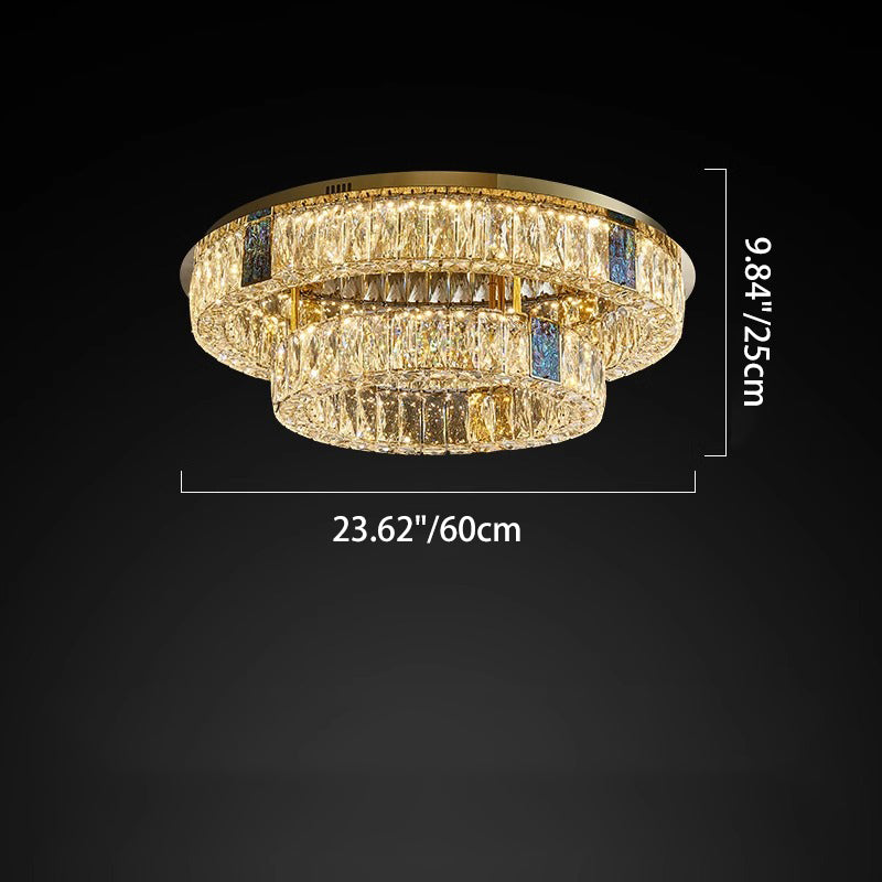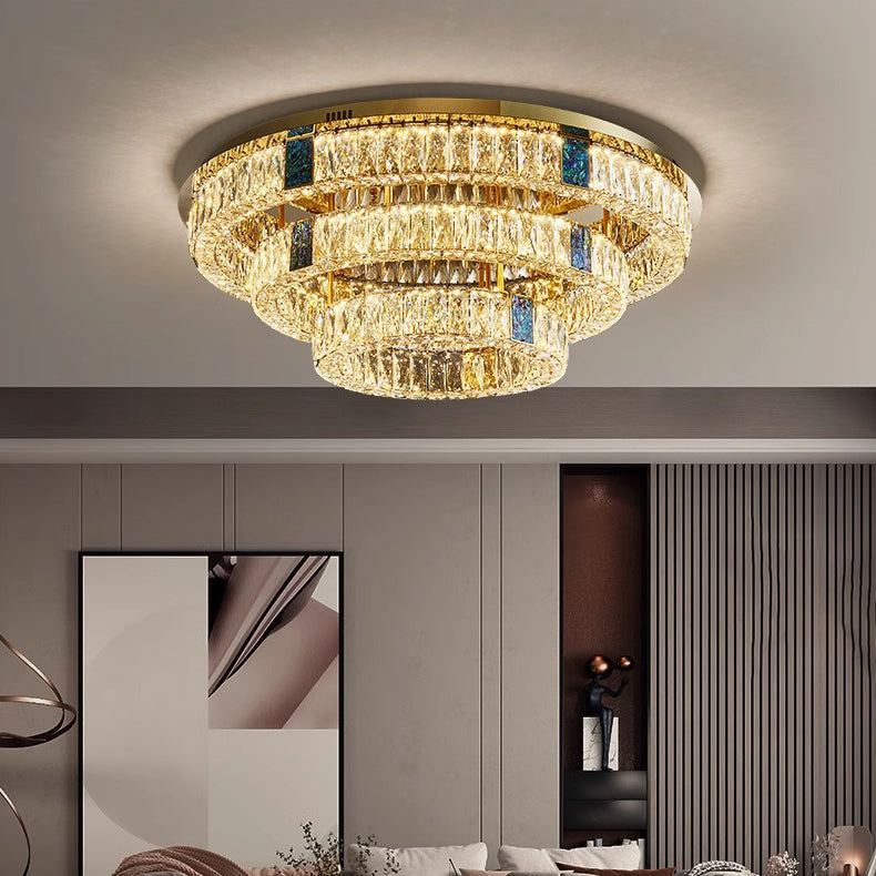 Modern Luxury Shell Stainless Steel & Crystal Round Multi-Layered LED Flush Mount Ceiling Light For Bedroom & Living Room