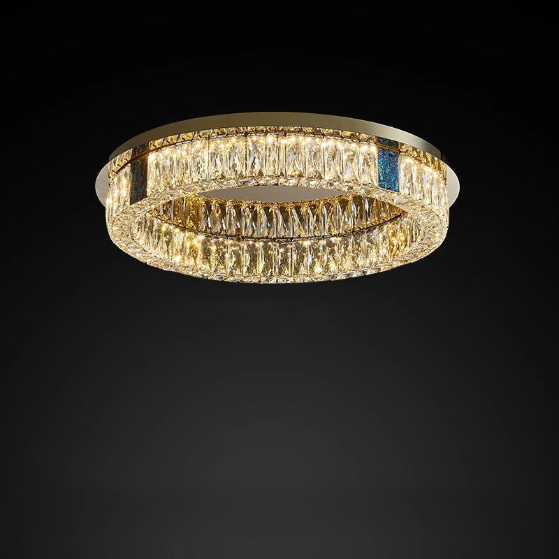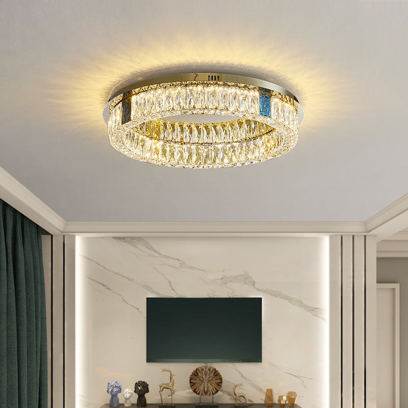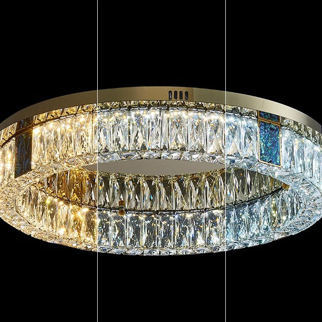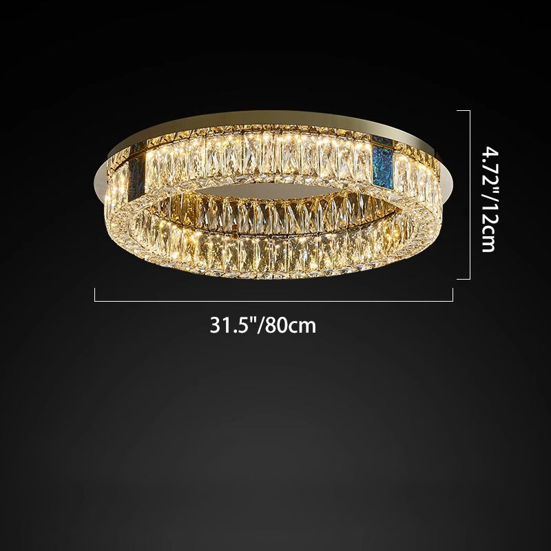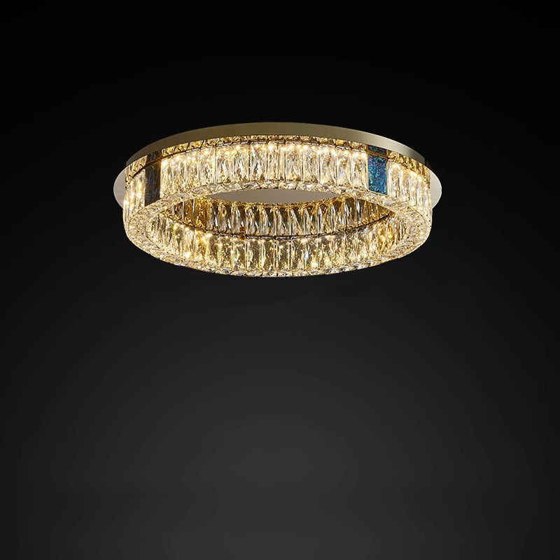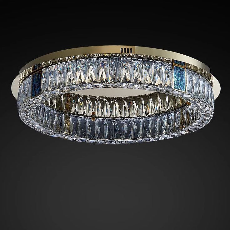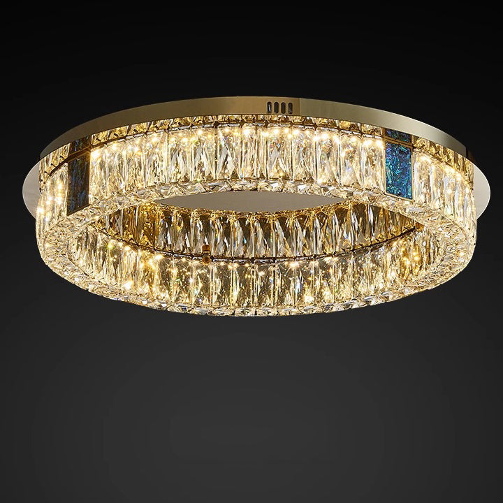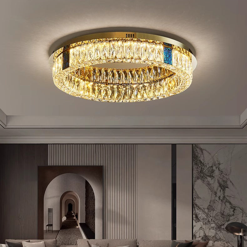 Modern Luxury Shell Stainless Steel & Crystal Round Multi-Layered LED Flush Mount Ceiling Light For Bedroom & Living Room