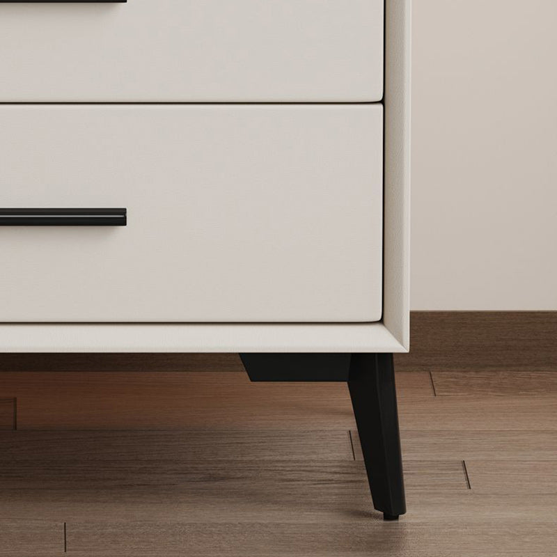 Modern Luxury Square Microfiber Leather Stone Veneer Solid Wood Panel Nightstand 2-Drawer For Bedroom