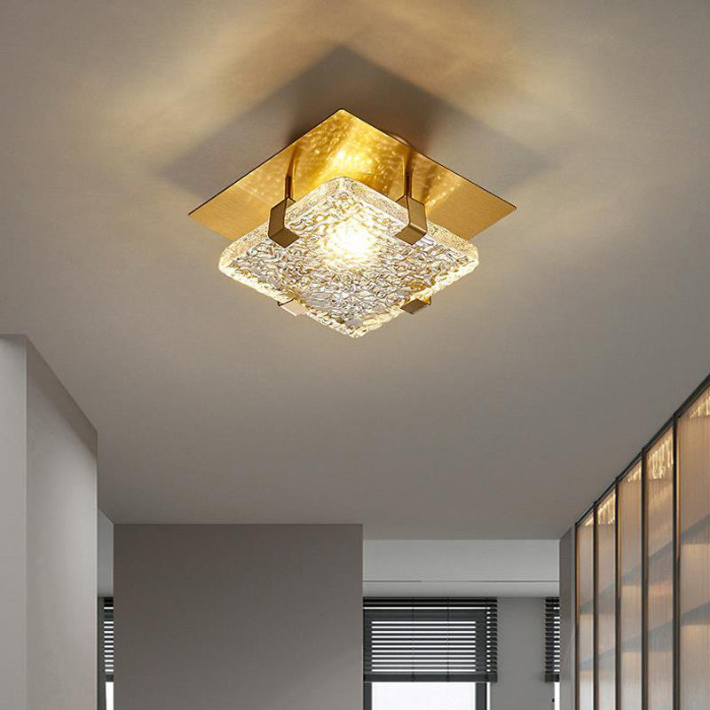 Modern Luxury Square Stainless Steel Glass LED Semi-Flush Mount Ceiling Light For Hallway