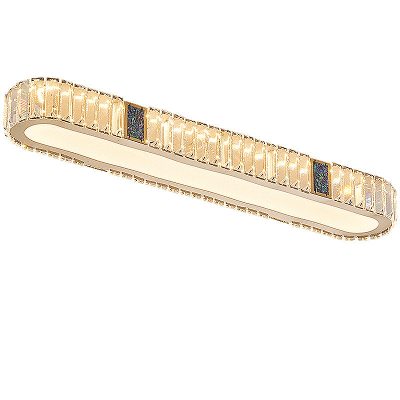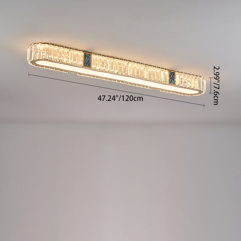 Modern Luxury Stainless Steel Crystal Acrylic Oval Strip LED Flush Mount Ceiling Light For Hallway & Entryway