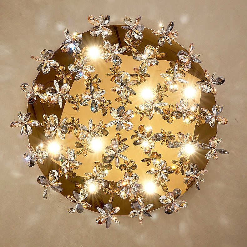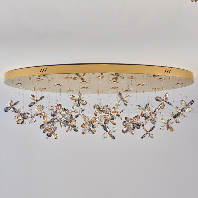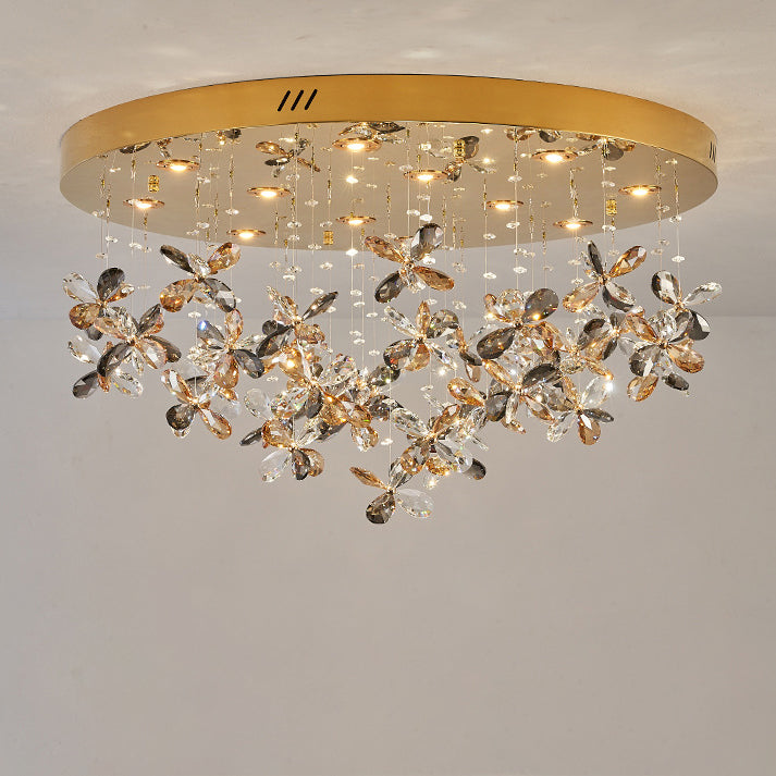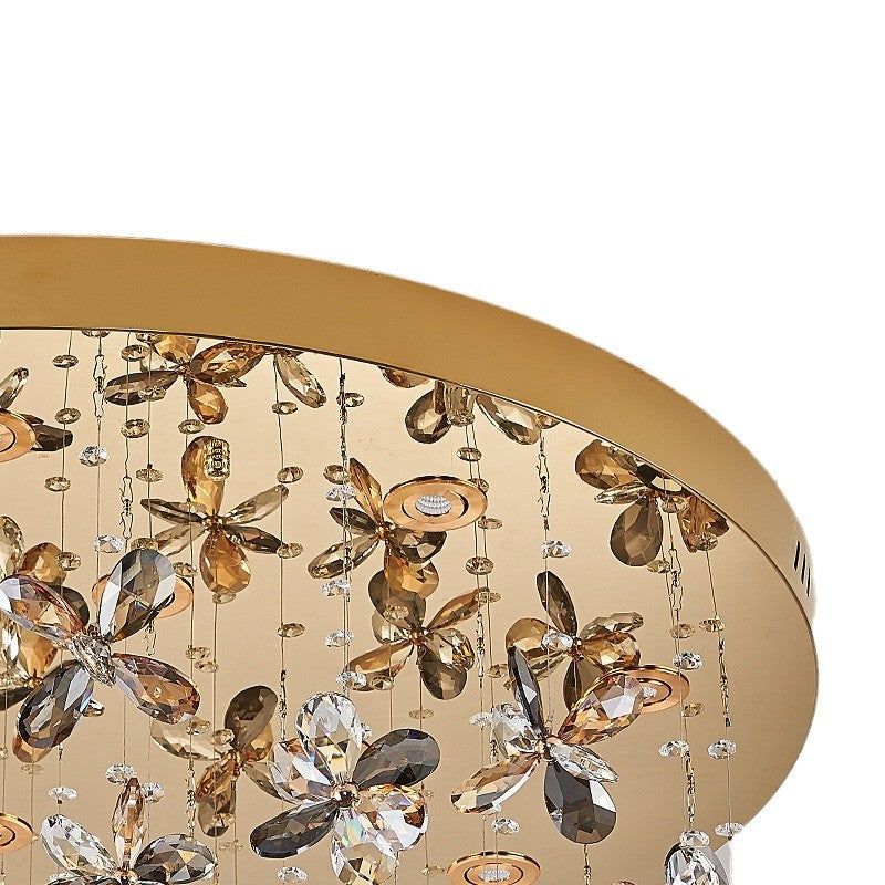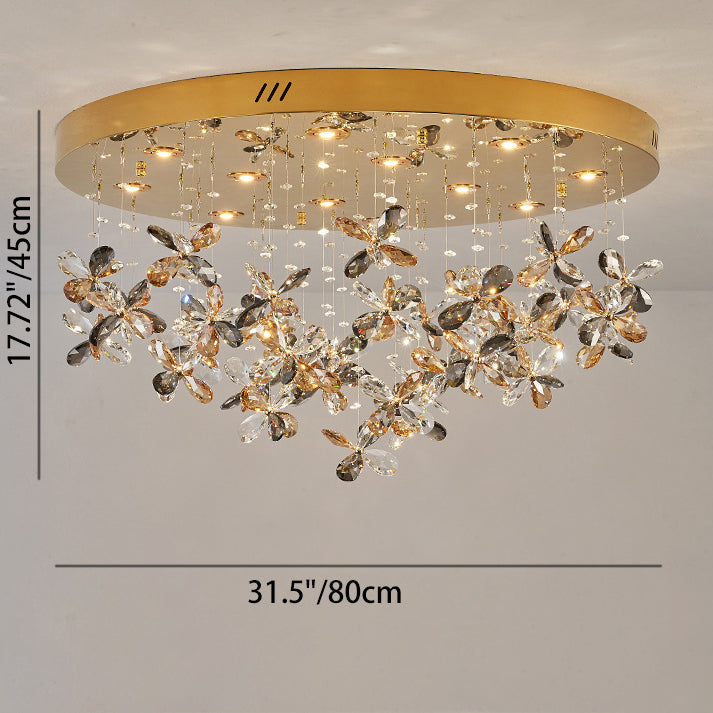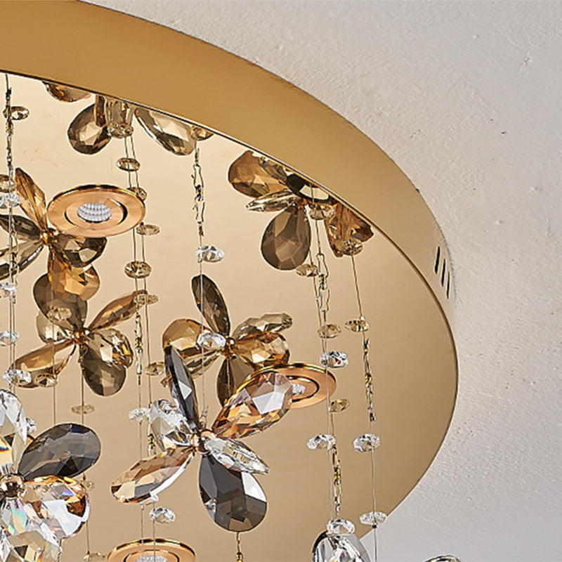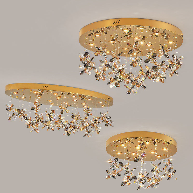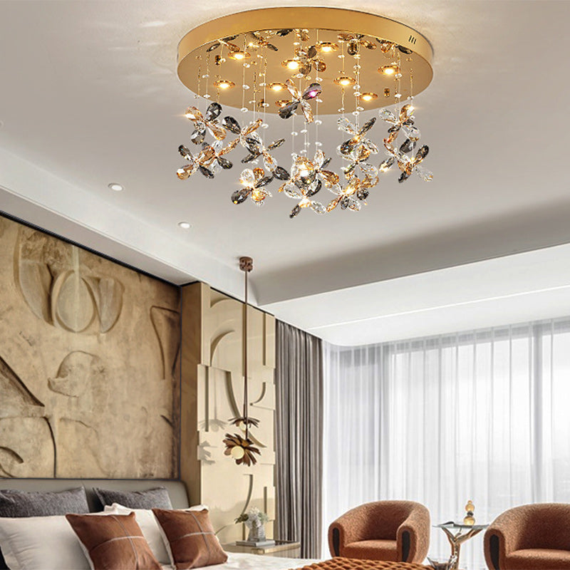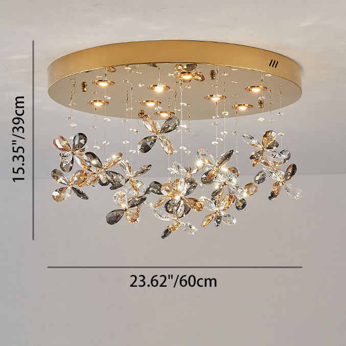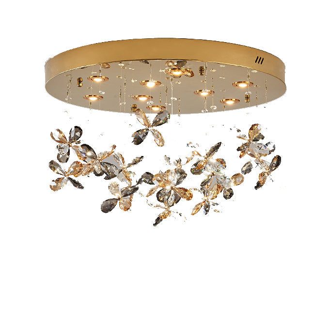 Modern Luxury Stainless Steel & Crystal Butterfly Round LED Flush Mount Ceiling Light For Living Room & Bedroom