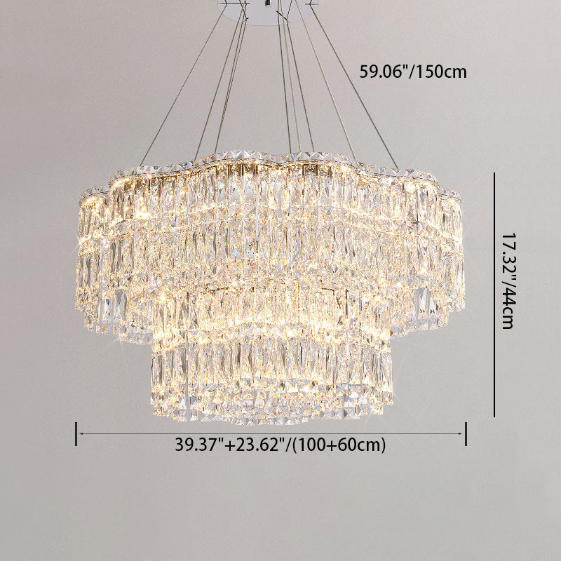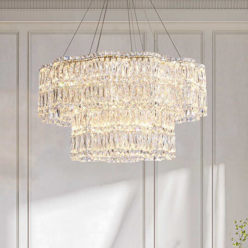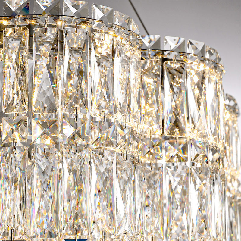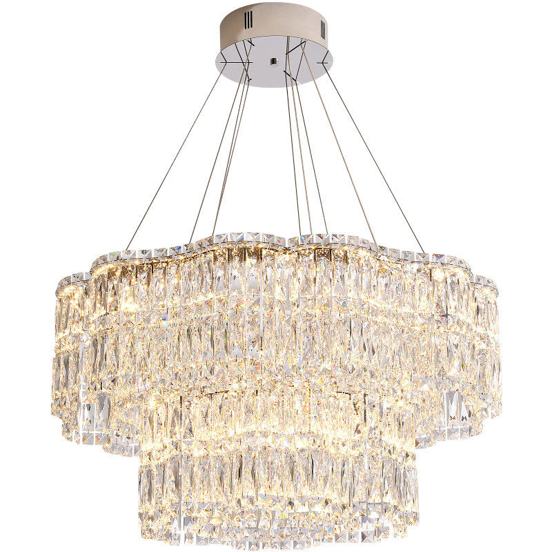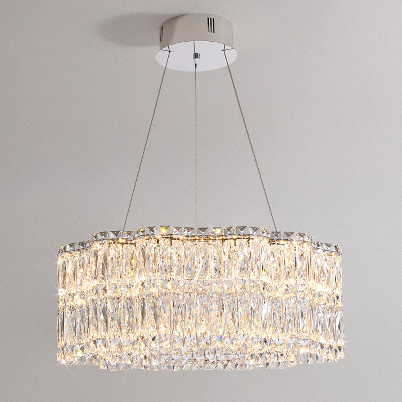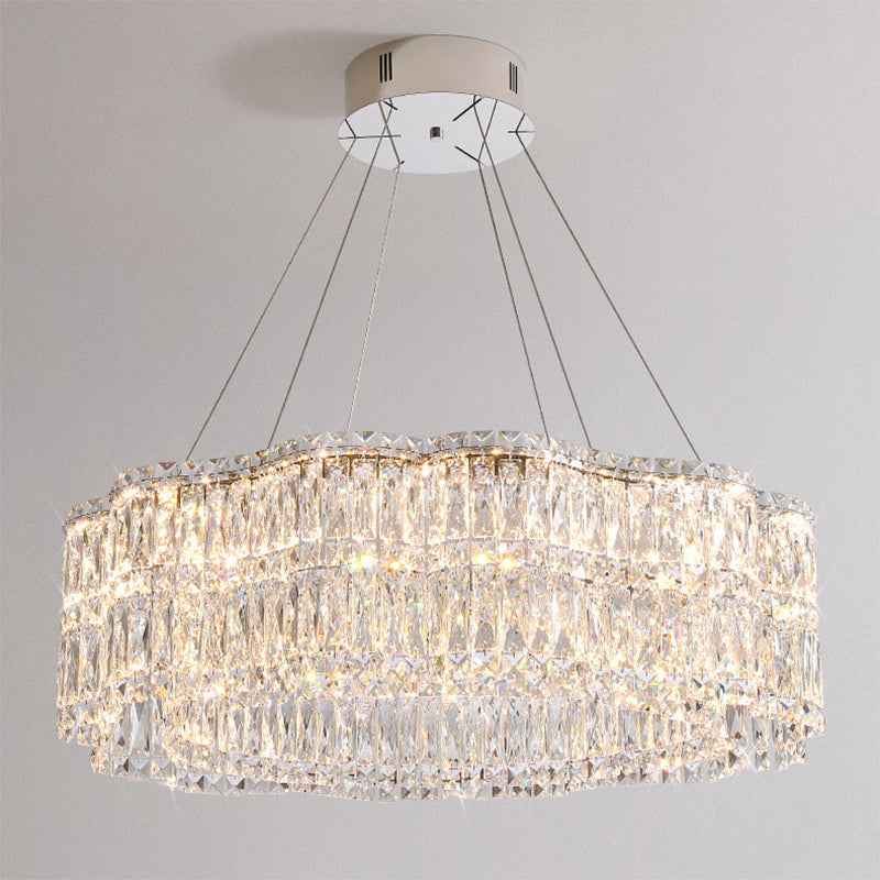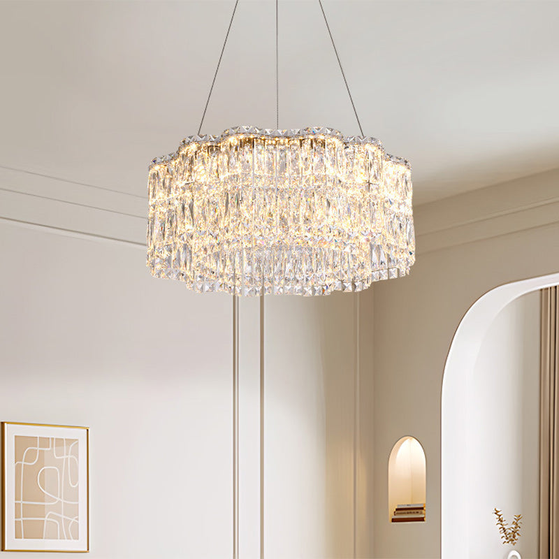 Modern Luxury Stainless Steel Crystal Round Flower LED Chandeliers For Living Room