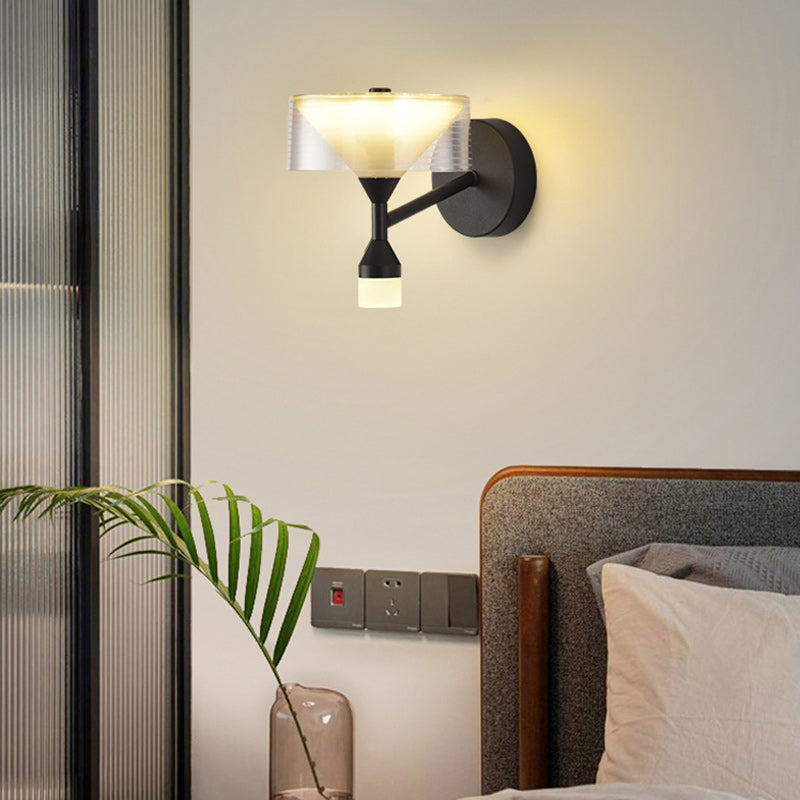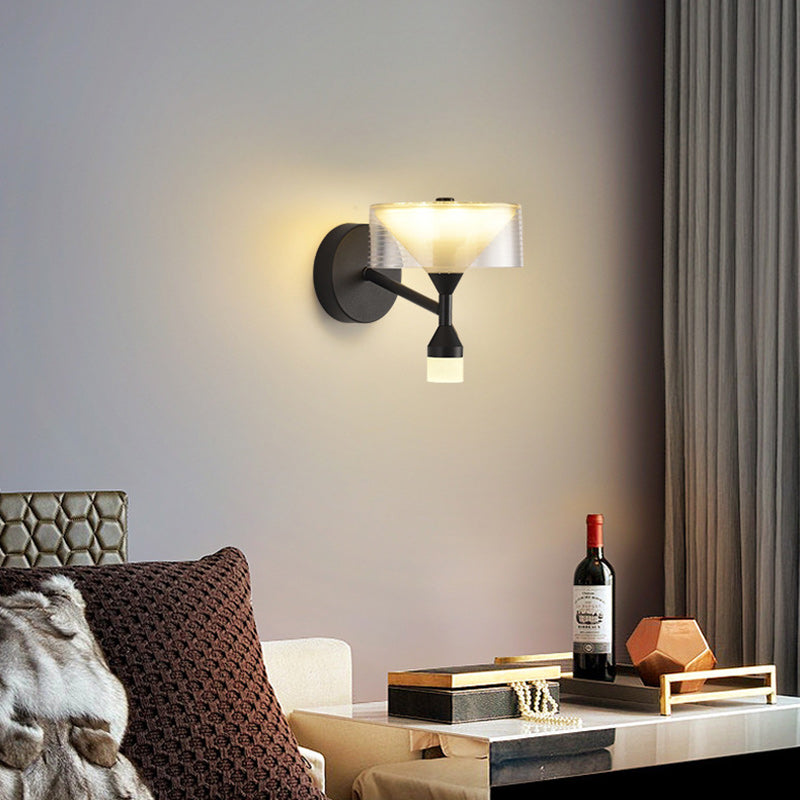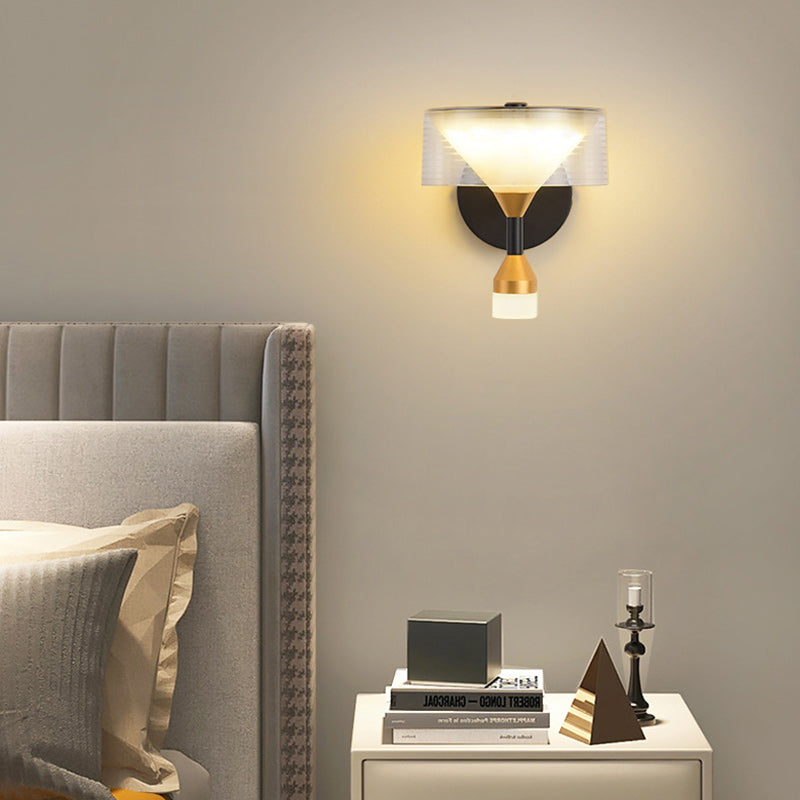 Modern Luxury Tapered Round Iron Acrylic LED Wall Sconce Lamp For Bedroom