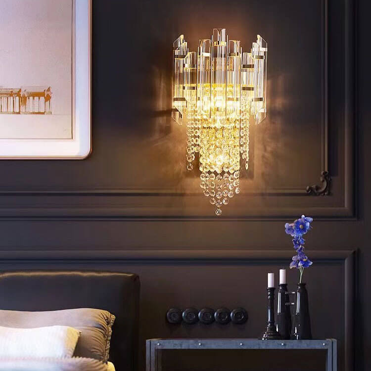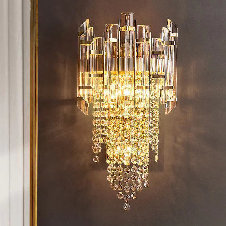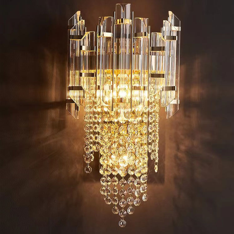 Modern Luxury Tassel Crystal Stainless Steel 3-Light Wall Sconce Lamp
