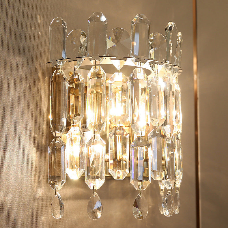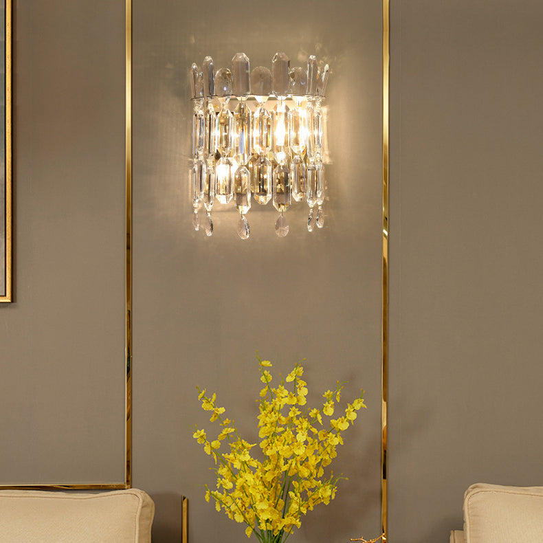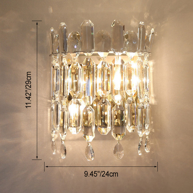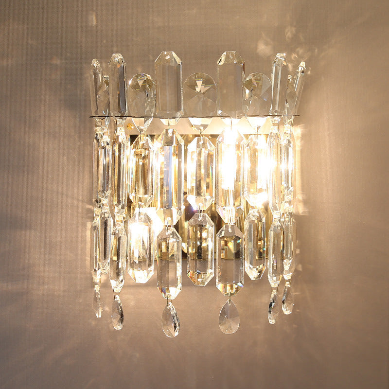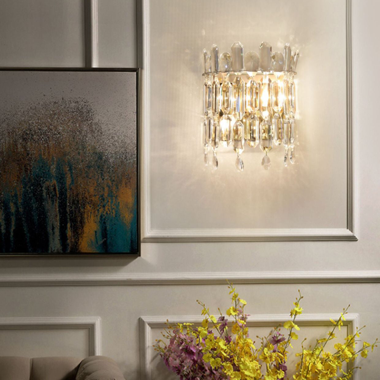 Modern Luxury Wall Sconce – 2-Light Metal & Crystal Water Drop Lamp for Living Room