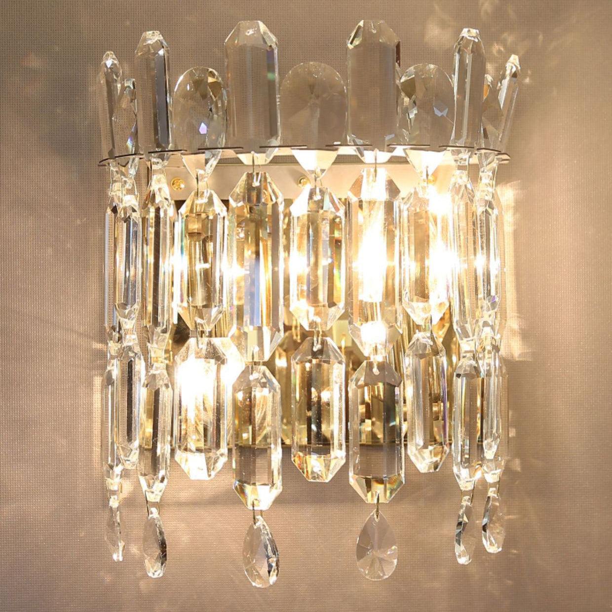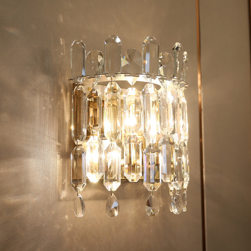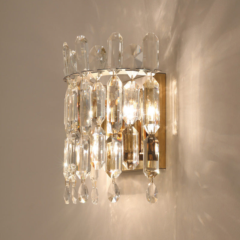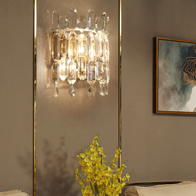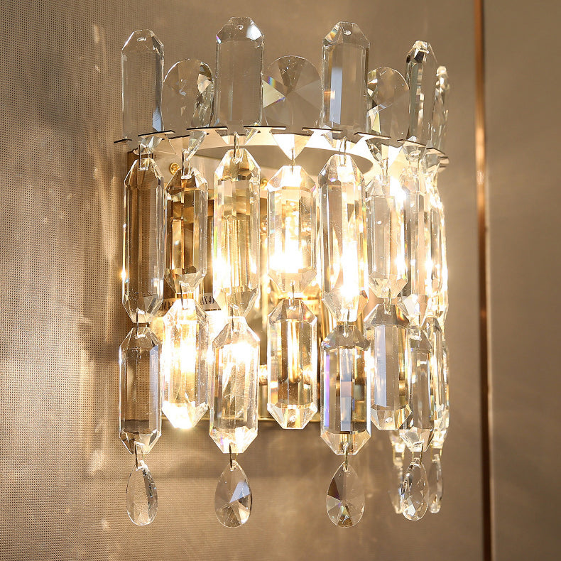 Modern Luxury Wall Sconce – 2-Light Metal & Crystal Water Drop Lamp for Living Room