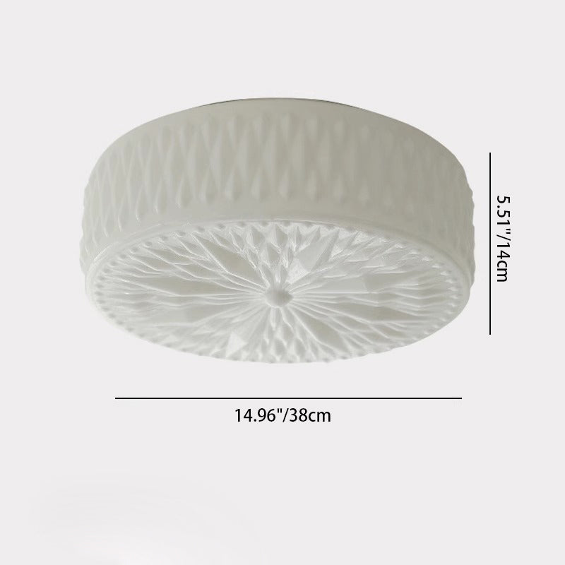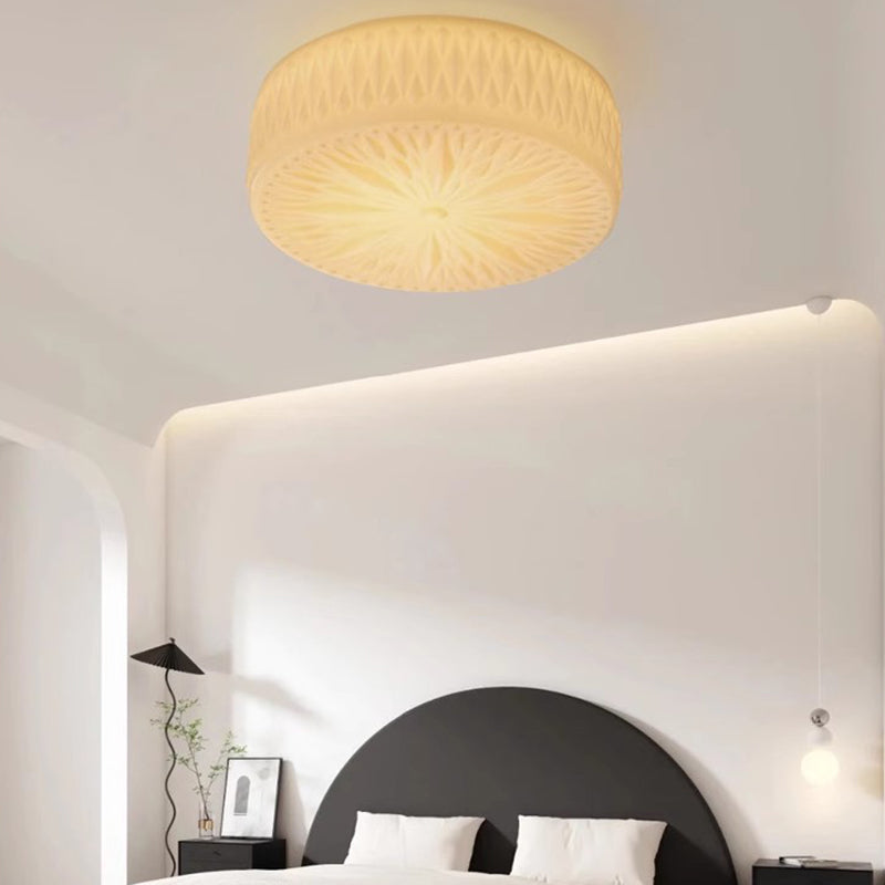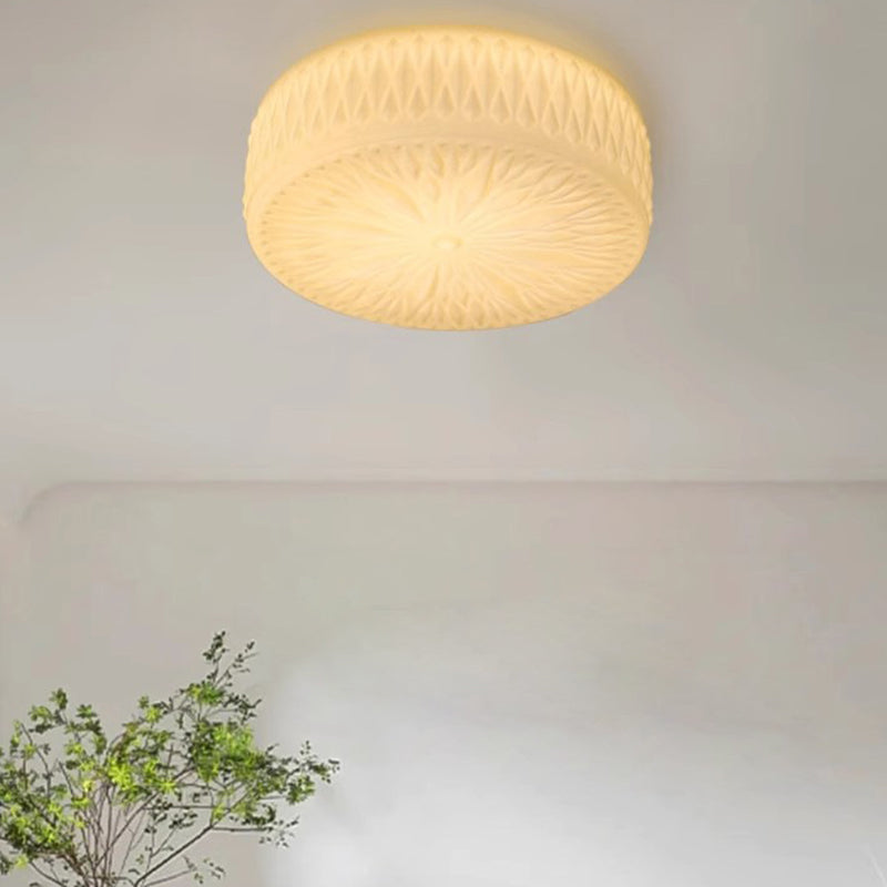 Modern Mid-Century Cream Round Cylinder Dome Iron Glass LED Flush Mount Ceiling Light For Bedroom